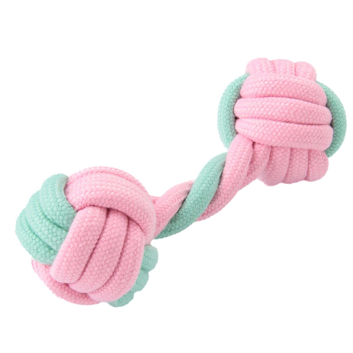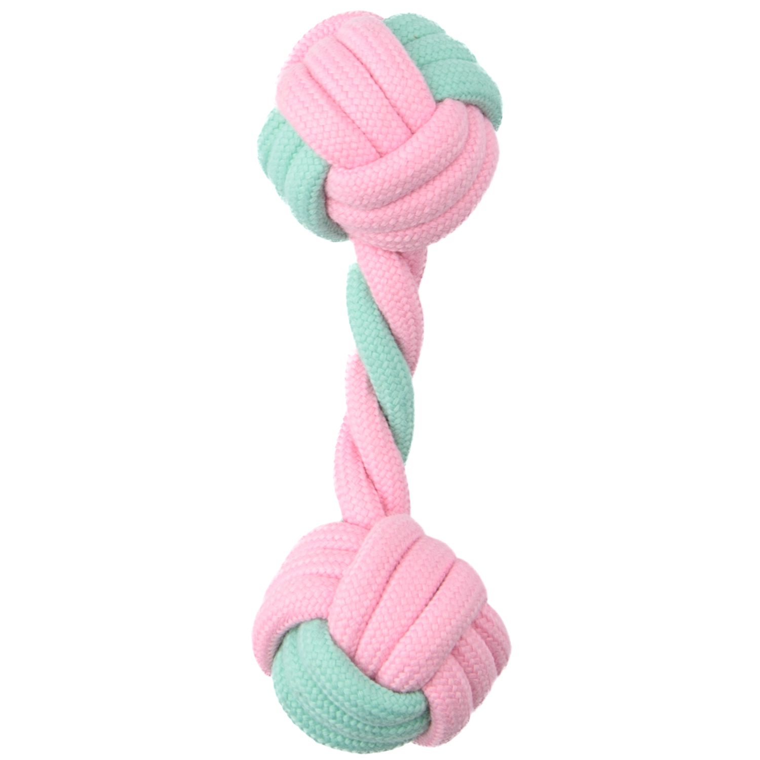 Игрушка Mr.Kranch для собак Гантель из каната 14*5 см розовая с голубым