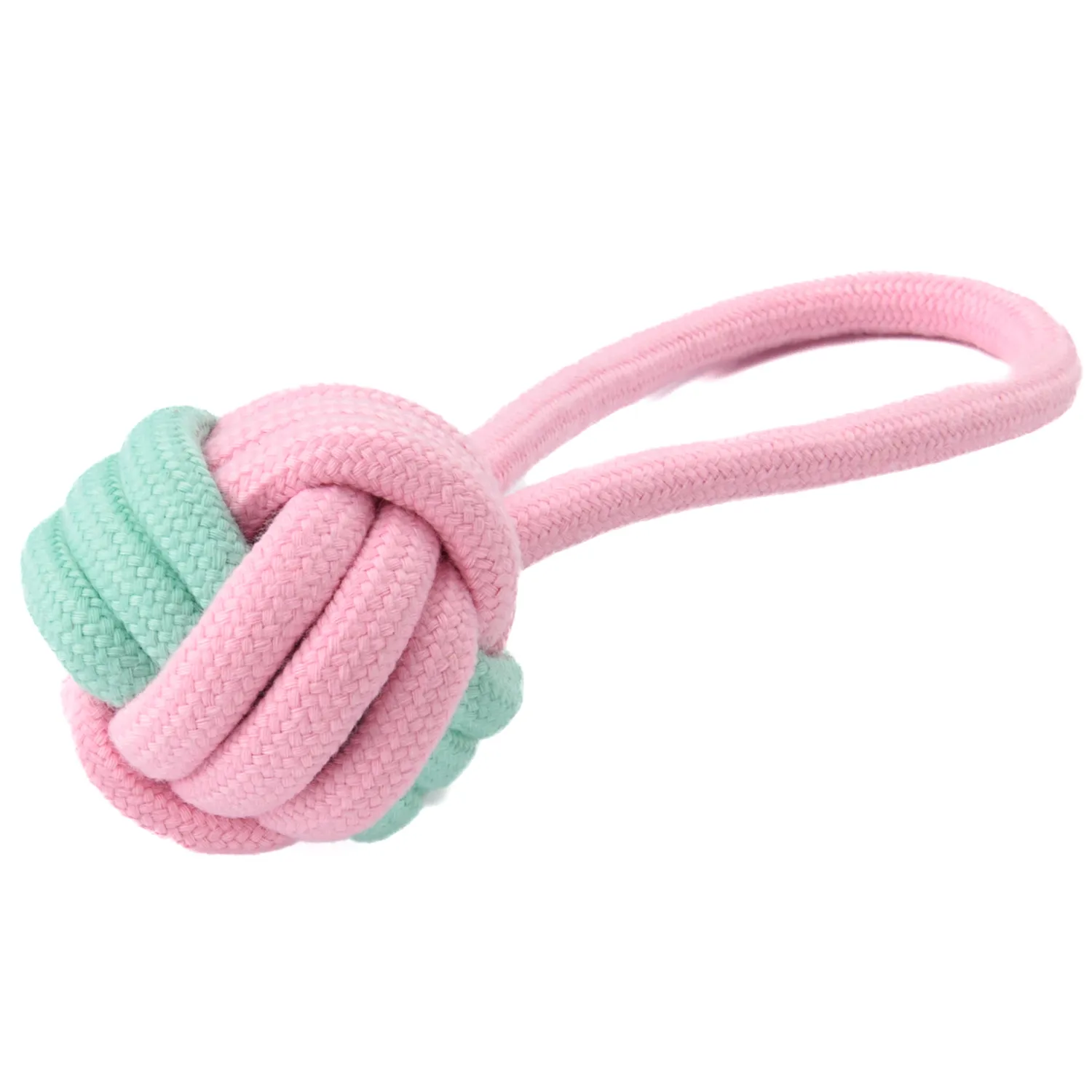 Игрушка Mr.Kranch для собак Мяч из каната на кольцевом шнуре 15*5 см розовая с голубым