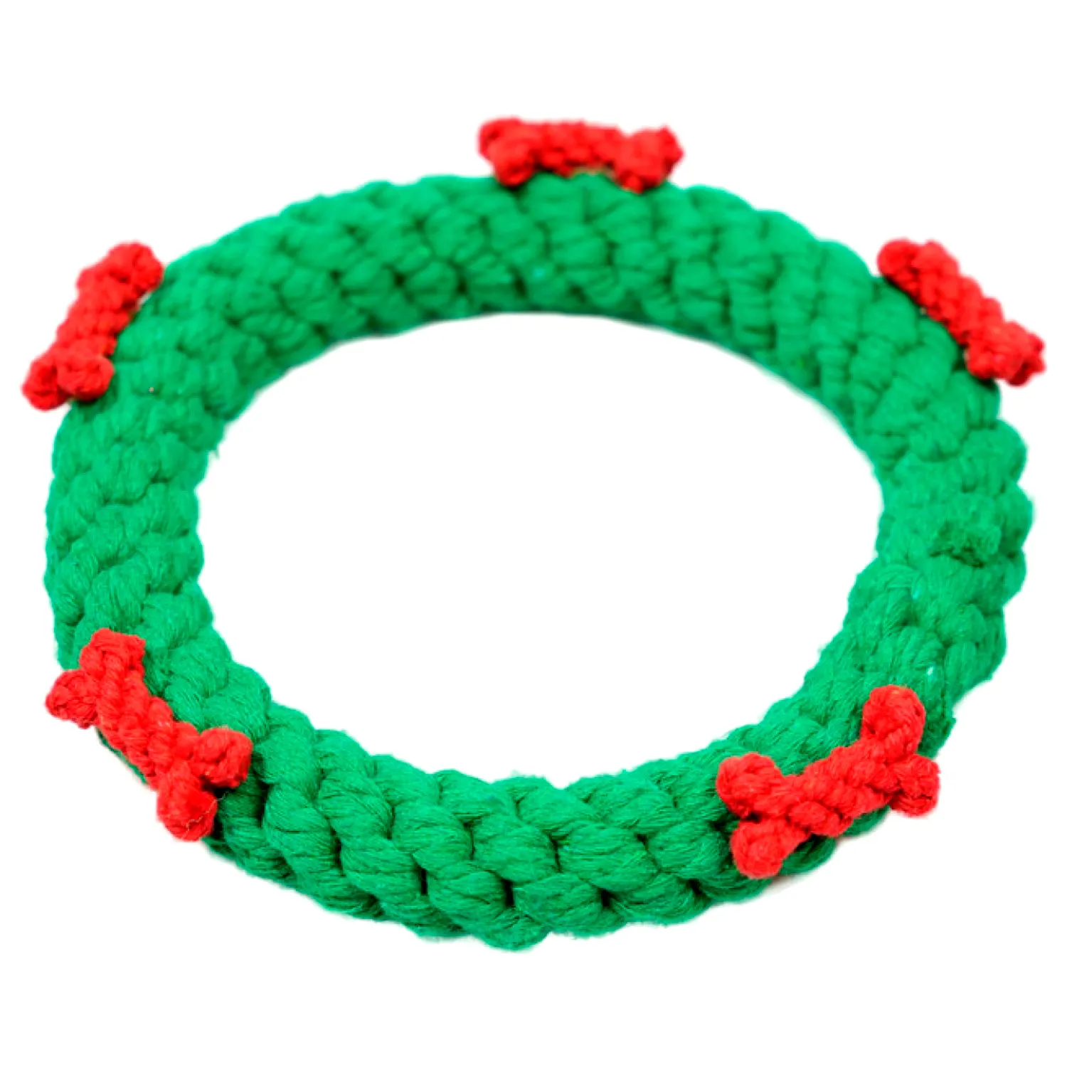 Игрушка Mr.Kranch для собак Венок из каната 18 см зеленая новогодняя серия СКИДКА 40%