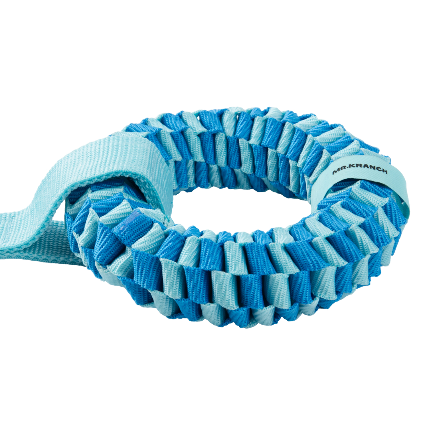 Игрушка-перетяжка Mr.Kranch для собак Плетеное кольцо-спираль двойное на ленте диаметр 12 см голубая