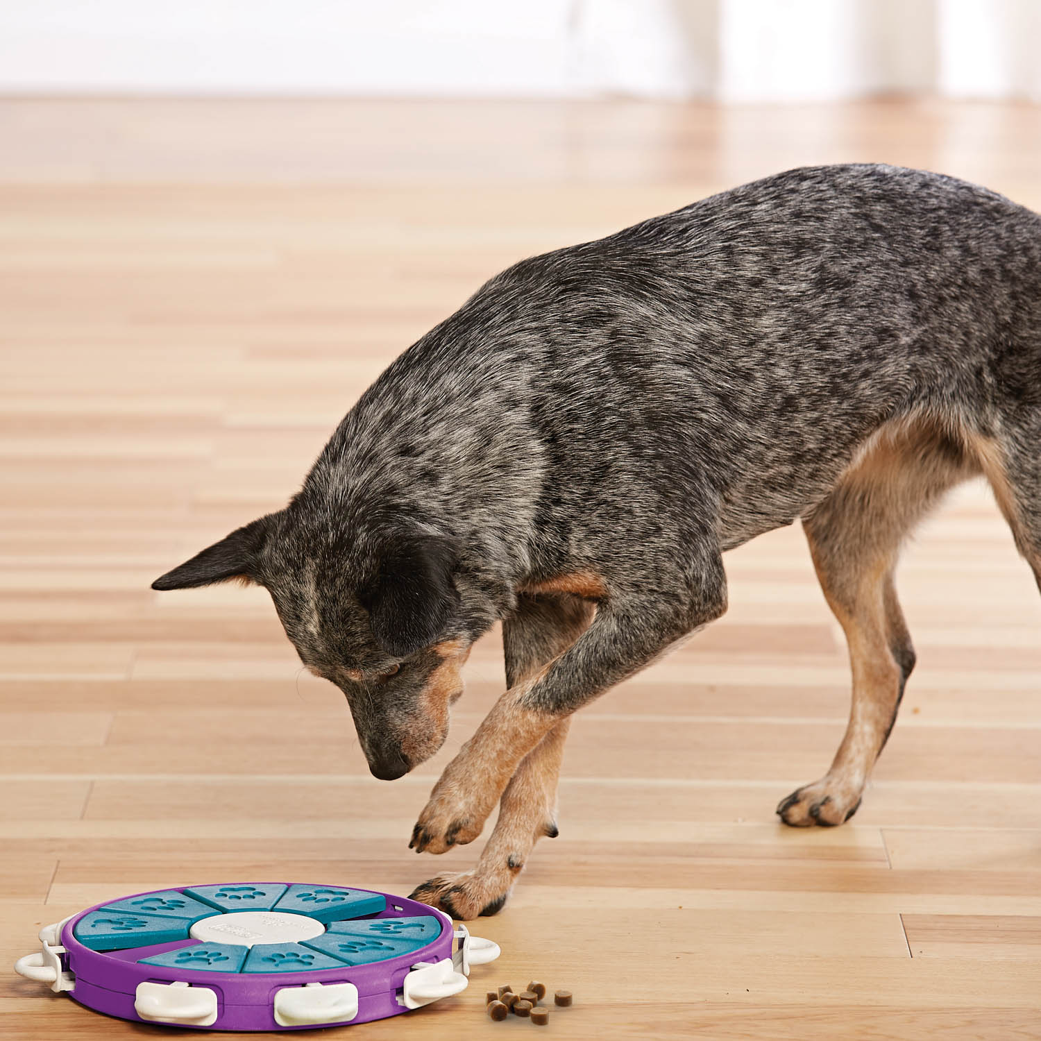 Интерактивная головоломка Twister для собак - это сложная игра, которая требует реальных навыков решения проблем и является интересной игрушкой-головоломкой для умных собак, которым требуется более сложная задача. Держите своего питомца счастливым и занятым, когда вы слишком заняты, чтобы поиграть с ним. В головоломке Twister есть 9 выдвижных ящиков для лакомств или корма, все из которых закреплены 9 запирающимися ручками. Вашей собаке нужно будет выполнять последовательные шаги, чтобы достать лакомства из головоломки.
