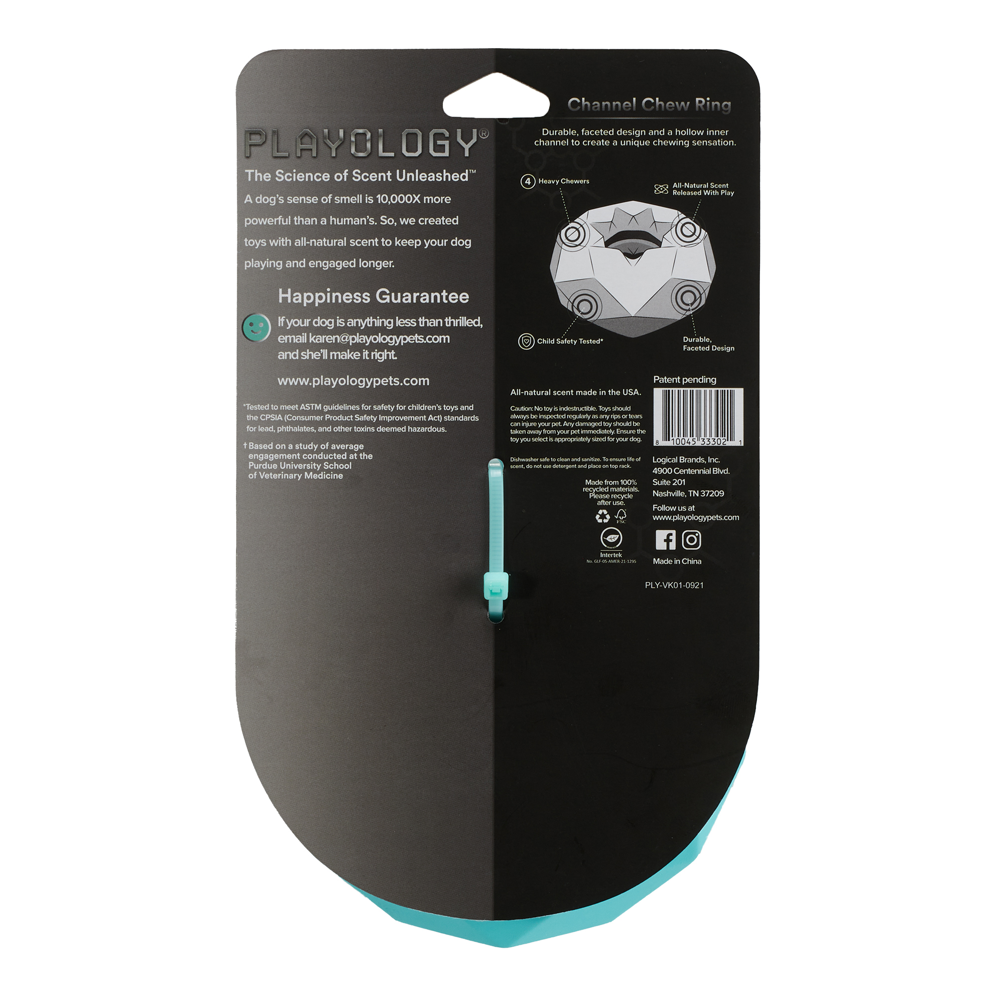 Playology ® разрабатывает ароматизированные игрушки, изготовленные из безопасных для собак материалов, которые занимают собаку в 7 раз дольше, чем игрушка без запаха. В основу каждой игрушки заложена технология «вживленного аромата» (ENCAPSISCENT®), ароматизированные частицы по запатентованной формуле буквально внедрены на микроскопическом уровне в прочный материал игрушек, будь то резина или текстиль, что делает их абсолютно уникальными и долго сохраняющими аромат. Многогранное жевательное кольцо CHANNEL CHEW RING уникальным граненым дизайном с желобками, обеспечивающим вашей собаке безопасное и приятное жевание, имитирующее жевание в дикой природе. Подходит для умеренно грызущих взрослых собак всех возрастов (от 15.9 кг и более). Обратите внимание: нет неразрушимых игрушек, любую игрушку следует регулярно осматривать и забирать, если игрушка повреждена, чтобы исключить травмирование питомца. Убедитесь, что выбранная вами игрушка подходит по размеру и темпераменту вашей собаки.