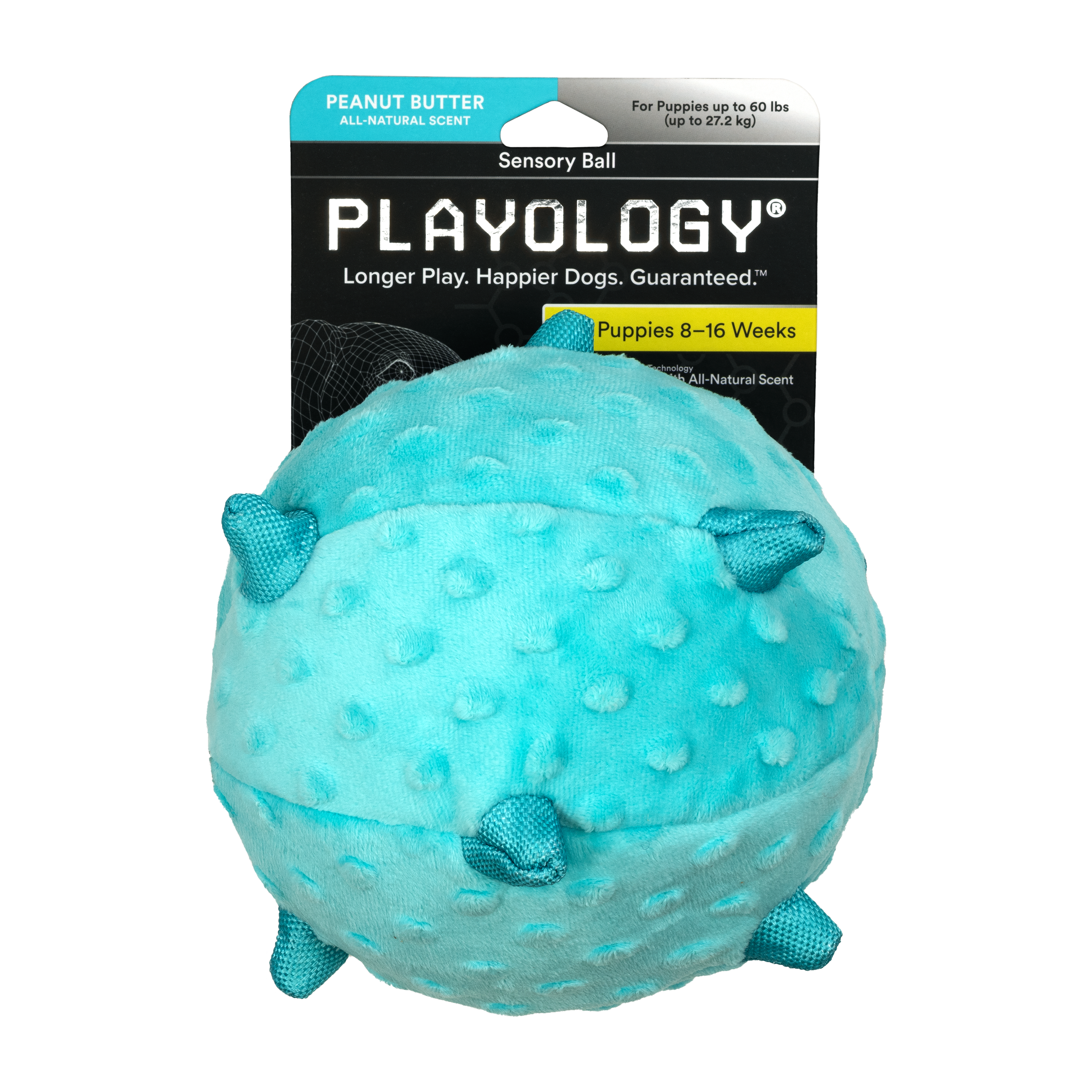 Playology ® разрабатывает ароматизированные игрушки, изготовленные из безопасных для собак материалов, которые занимают собаку в 7 раз дольше, чем игрушка без запаха. В основу каждой игрушки заложена технология «вживленного аромата» (ENCAPSISCENT®), ароматизированные частицы по запатентованной формуле буквально внедрены на микроскопическом уровне в прочный материал игрушек, будь то резина или текстиль, что делает их абсолютно уникальными и долго сохраняющими аромат. Плюшевый сенсорный мяч PUPPY SENSORY BALL 15 см с различными текстурами и пищалкой идеально подходит для щенков и спобствуют раннему развитию питомца. Подходит для щенков 8-16 месяцев (весом от 6,8 до 15,9 кг) для улучшения сенсорного восприятия.