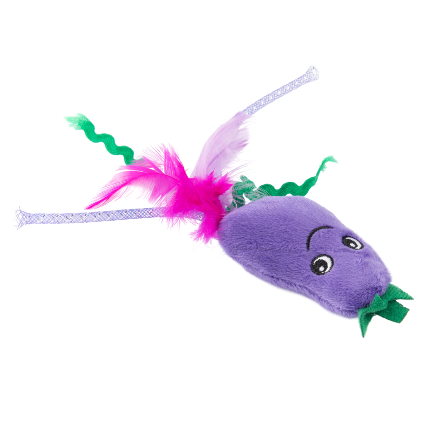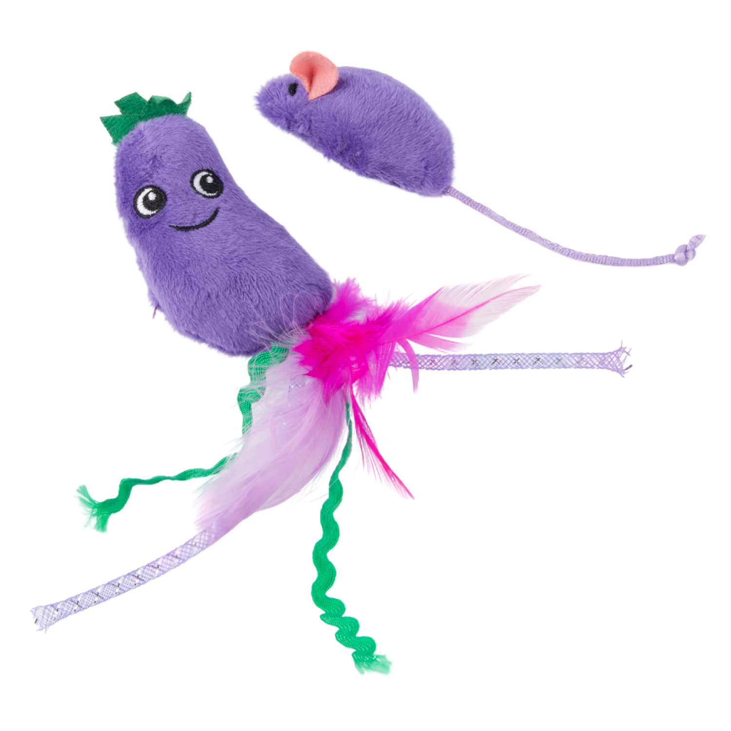 Игрушка Mr.Kranch для кошек Баклажанчик и Мышка плюшевая с кошачьей мятой и перышками 19 см фиолетовая