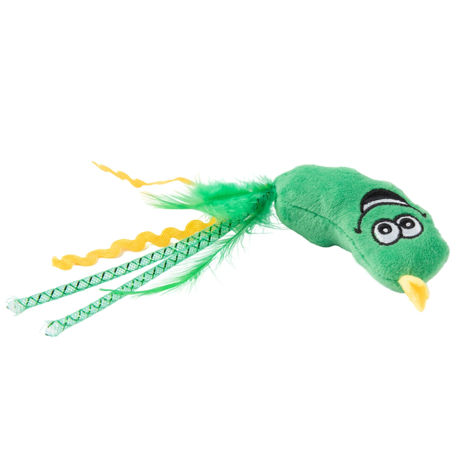 Игрушка Mr.Kranch для кошек Огурчик плюшевая с кошачьей мятой и перышками 17 см зеленая