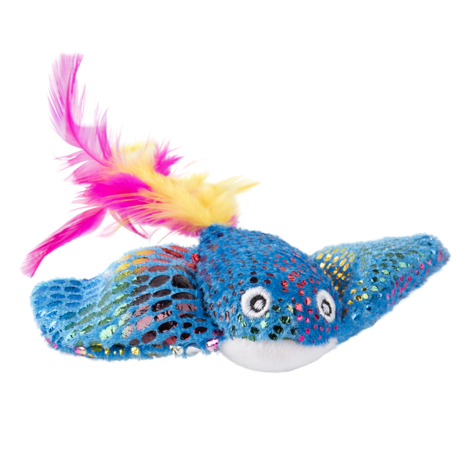 Игрушка Mr.Kranch для кошек Скат плюшевая с кошачьей мятой и перышками 16 см голубая