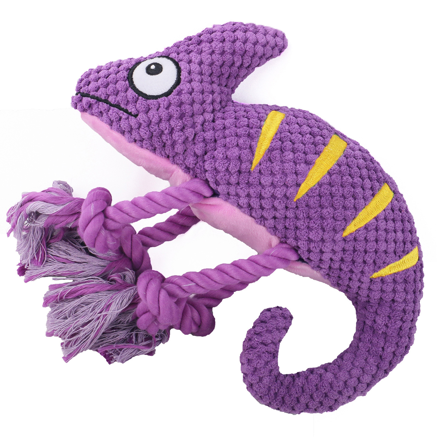 Игрушка Mr.Kranch для собак Хамелеон плюшевая с канатиками и пищалкой 26 см фиолетовая