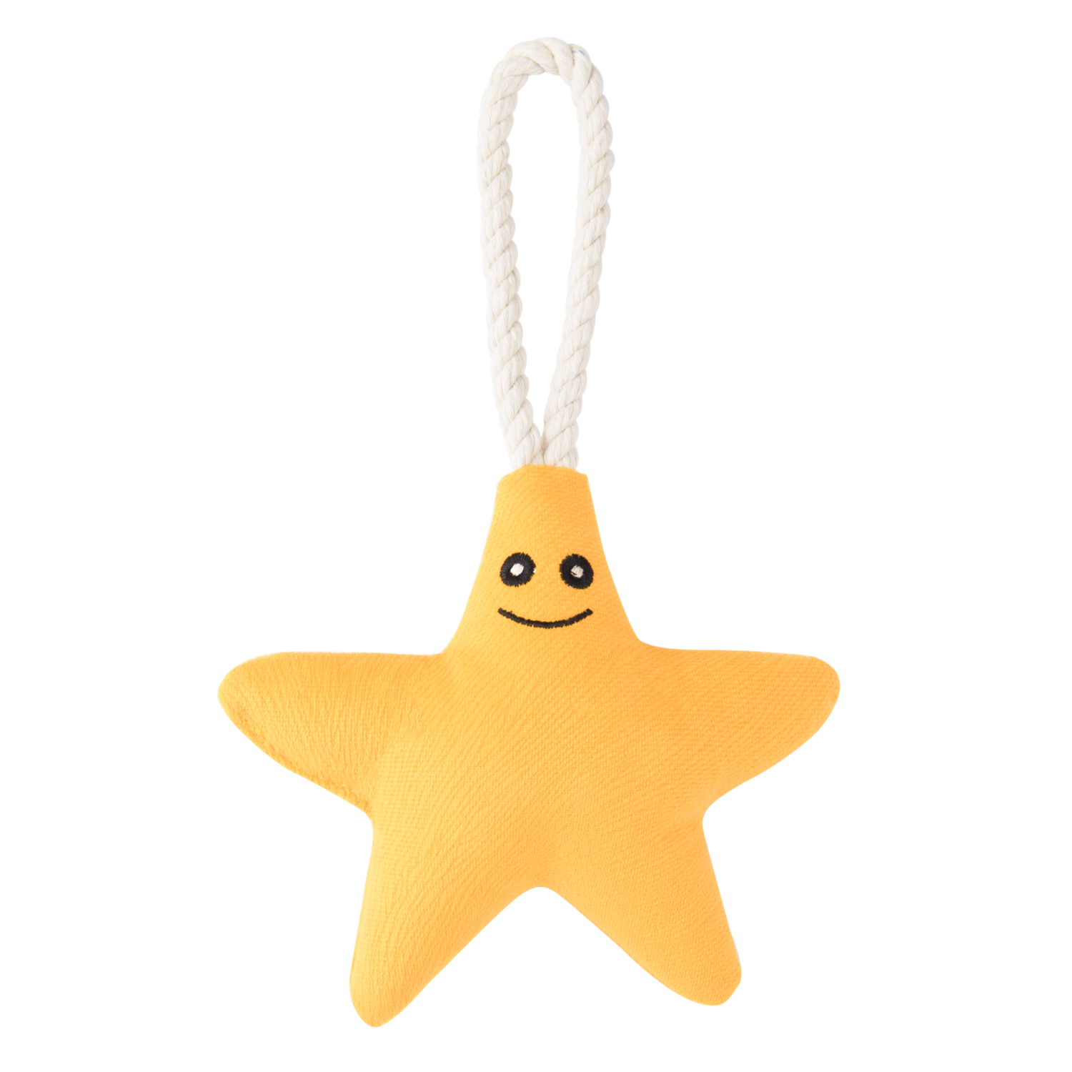 Игрушка Mr.Kranch для собак мелких и средних пород Звездочка с канатом и пищалкой 26х16х5см желтая СКИДКА 40%