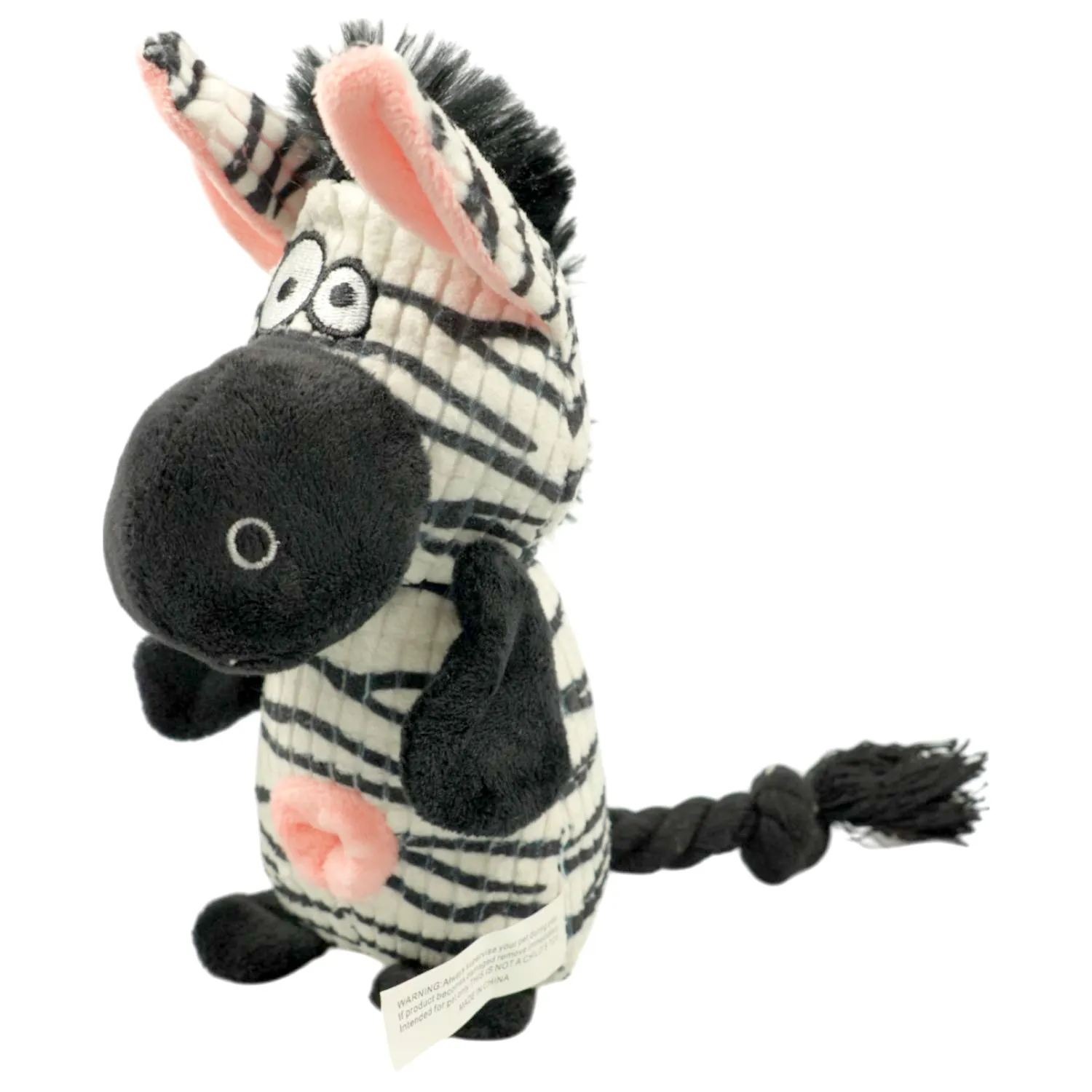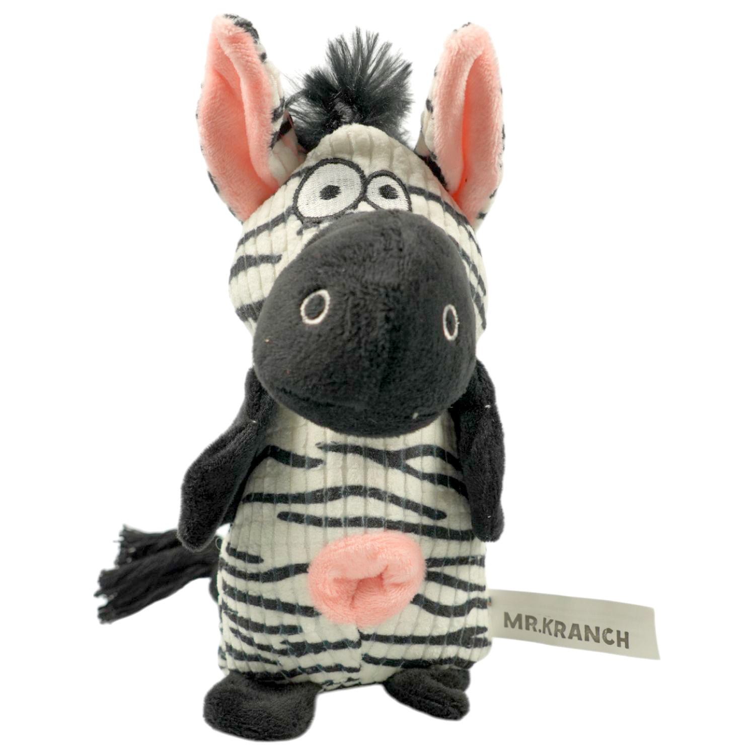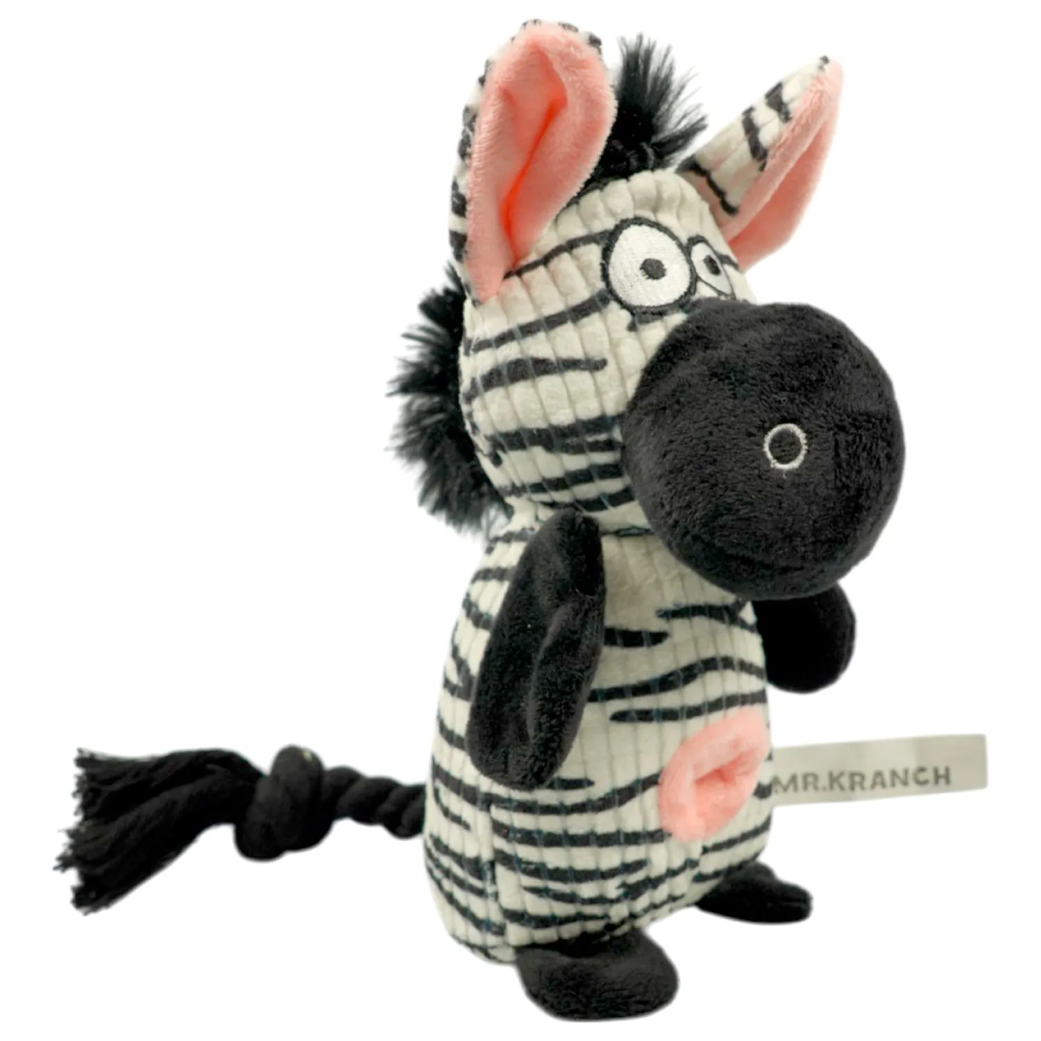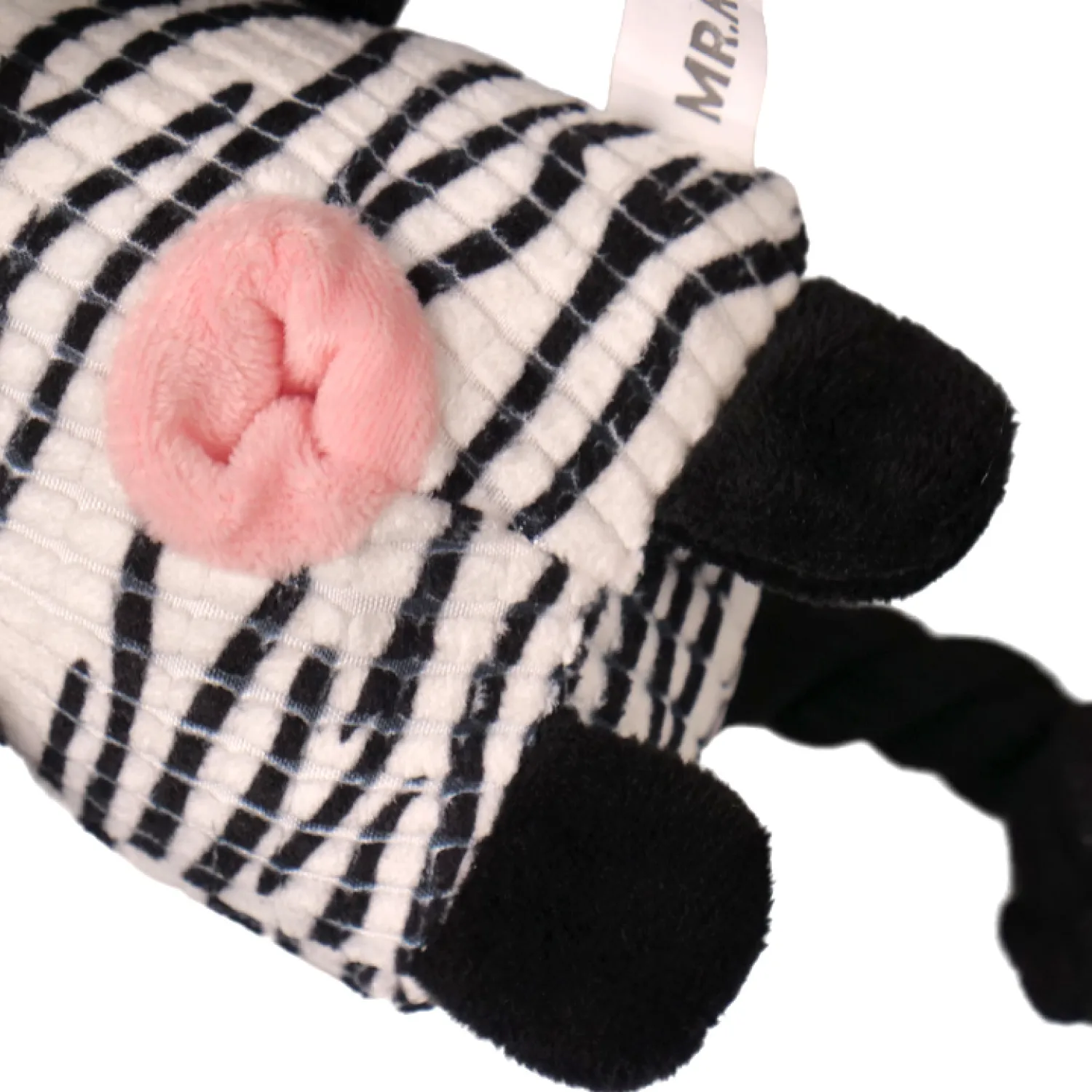 Игрушка Mr.Kranch для собак Зебра плюшевая с канатиками, пищалкой и отверстием под лакомство.