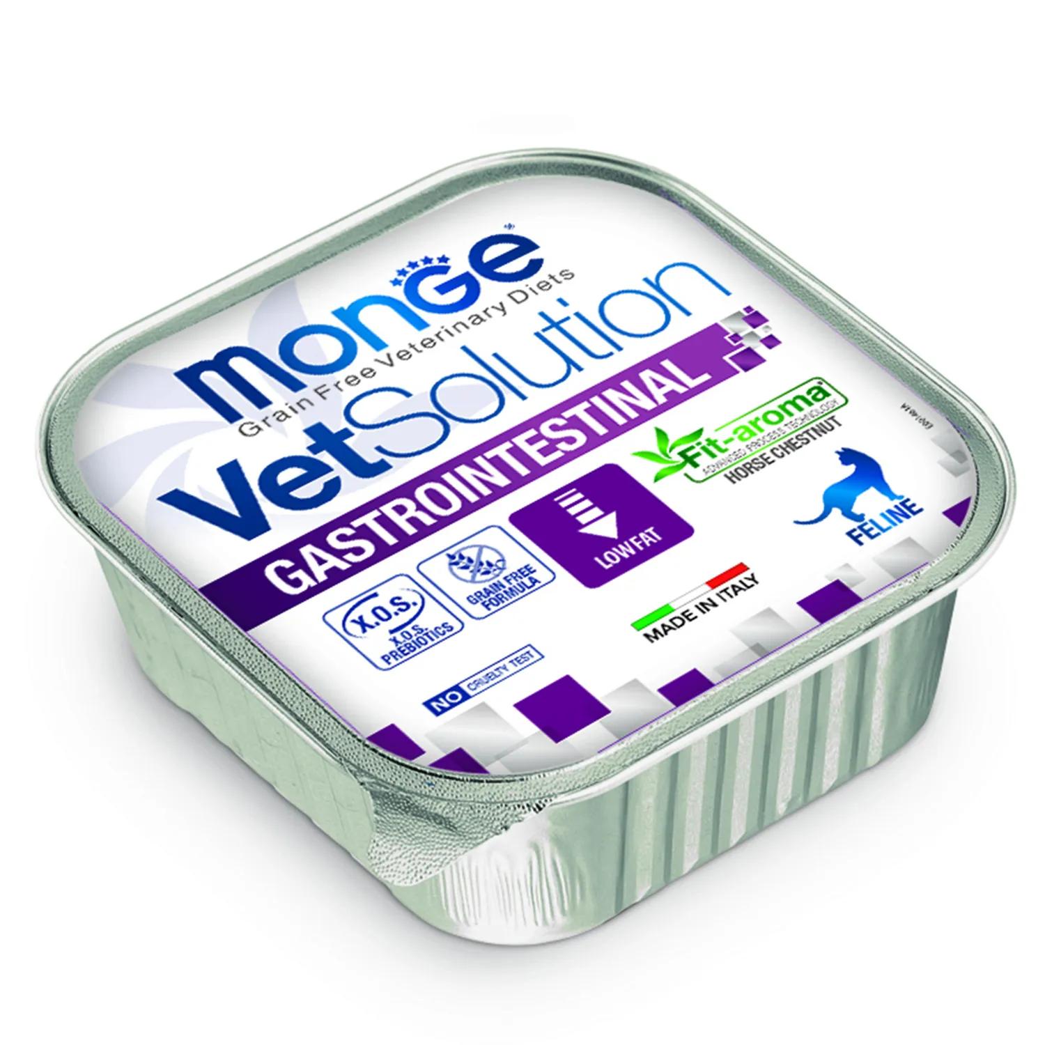 Лечебный корм Monge (Монж) VetSolution Cat Gastrointestinal Гастро интестинал для кошек при заболеваниях желудочно-кишечного тракта, таких как гастрит, колит, острый и хронический гастроэнтерит, диарея и избыточный бактериальный рост в тонком отделе кишечника 100г.