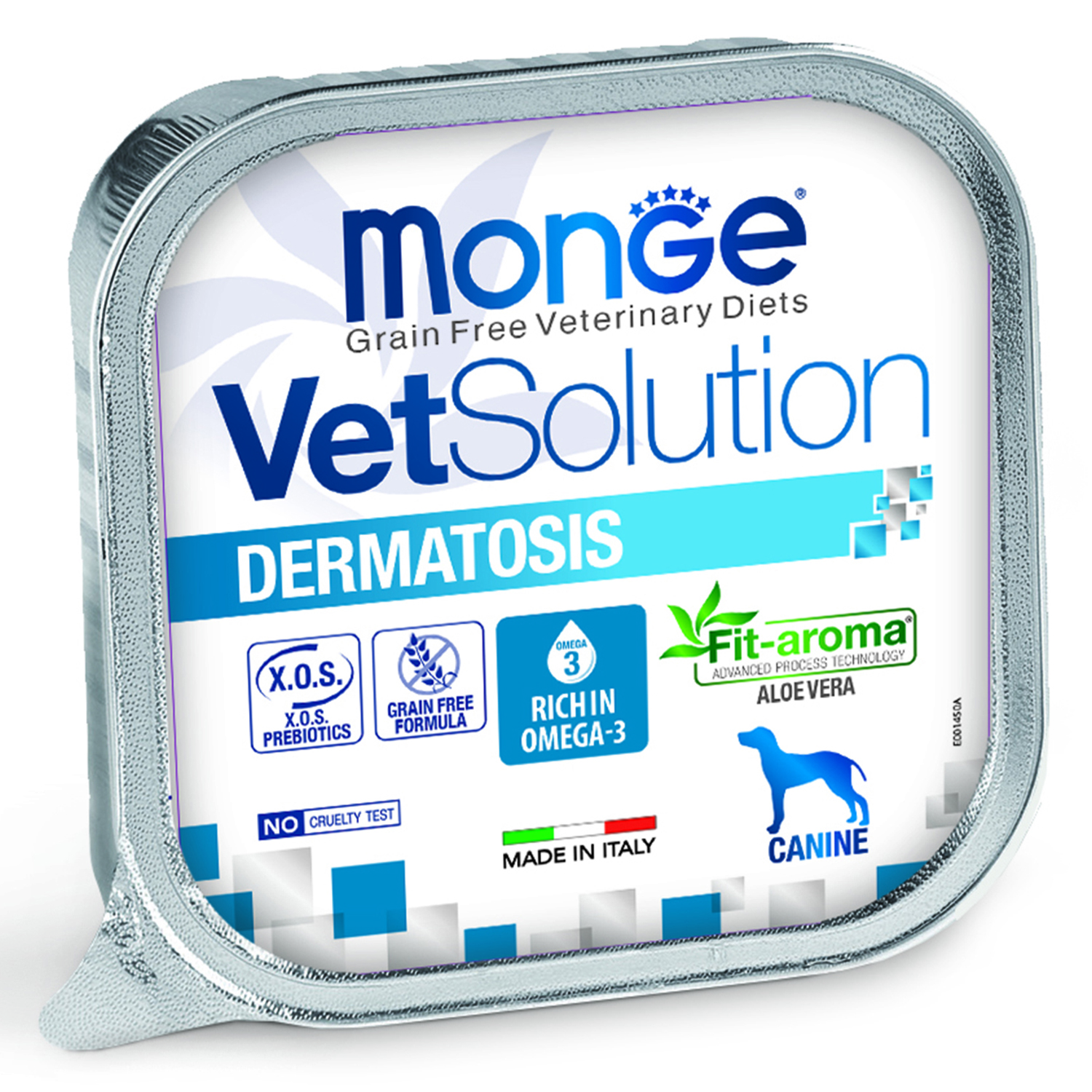 Лечебный корм Monge (Монж) VetSolution Dog Dermatosis Дерматозис для собак при заболеваниях кожи, таких как дерматит, хронический зуд, заболеваниях кожи, сопровождающиеся воспалением, пищевая аллергия и пищевая непереносимость 150 г.