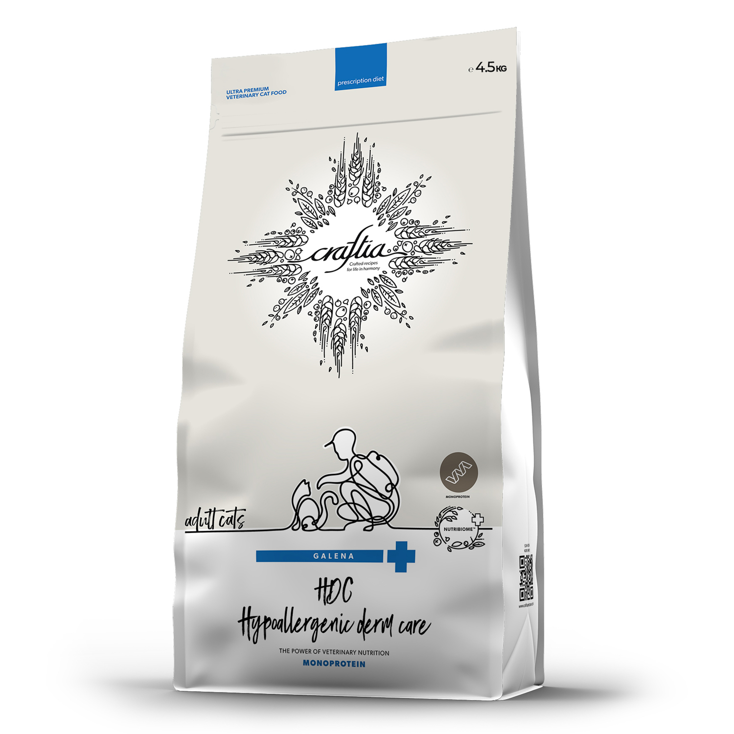 Ветеринарная диета CRAFTIA GALENA CAT HYPOALLERGENIC DERM CARE Гипоаллердженик Дерм для кошек при пищевой аллергии и заболеваниях кожи 4,5 кг