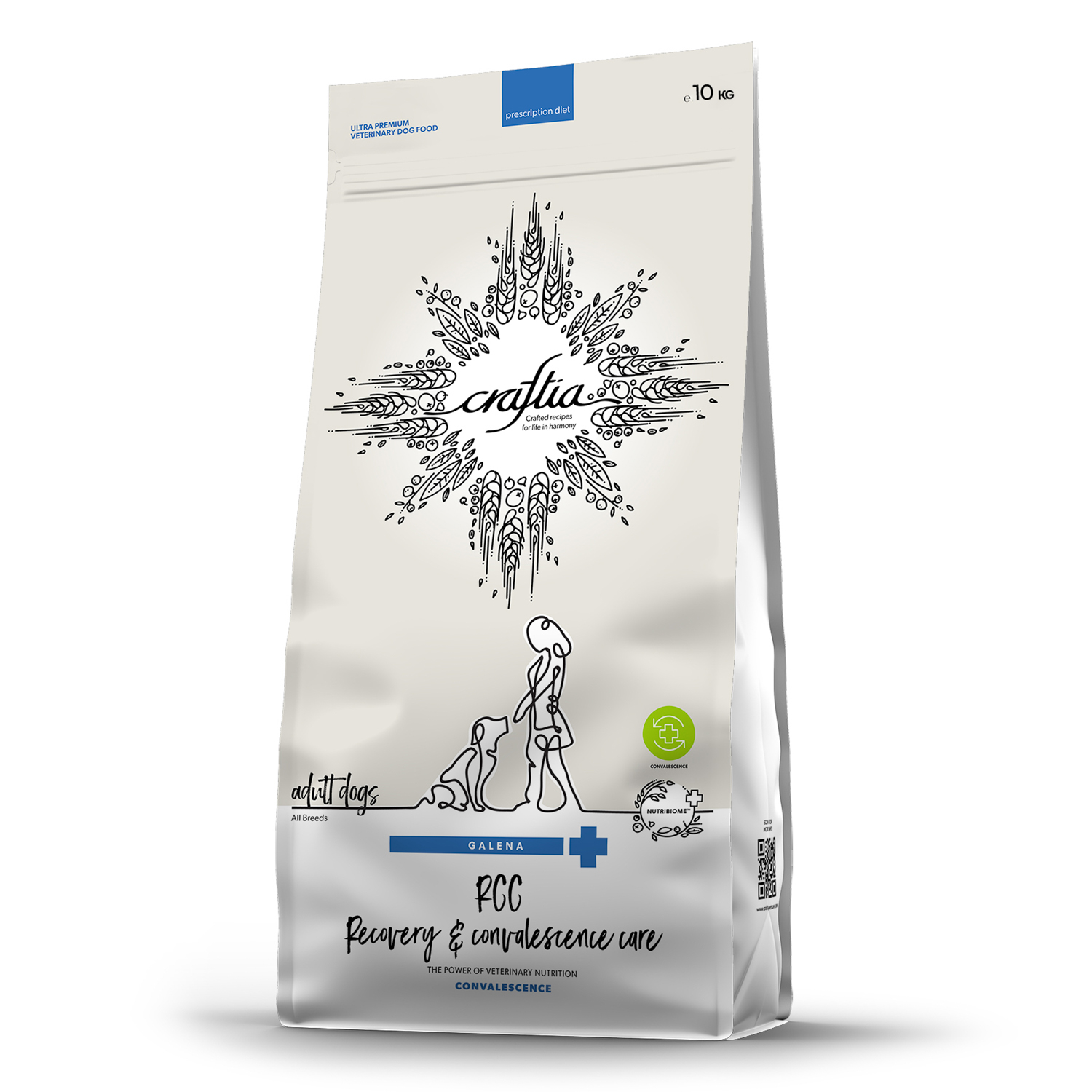Craftia Galena Recovery&Сonvalescence Care - полнорационный диетический корм для собак, разработан для питания в период выздоровления и реабилитации после болезни или после перенесенной травмы путем оказания специализированной питательной поддержки организма.