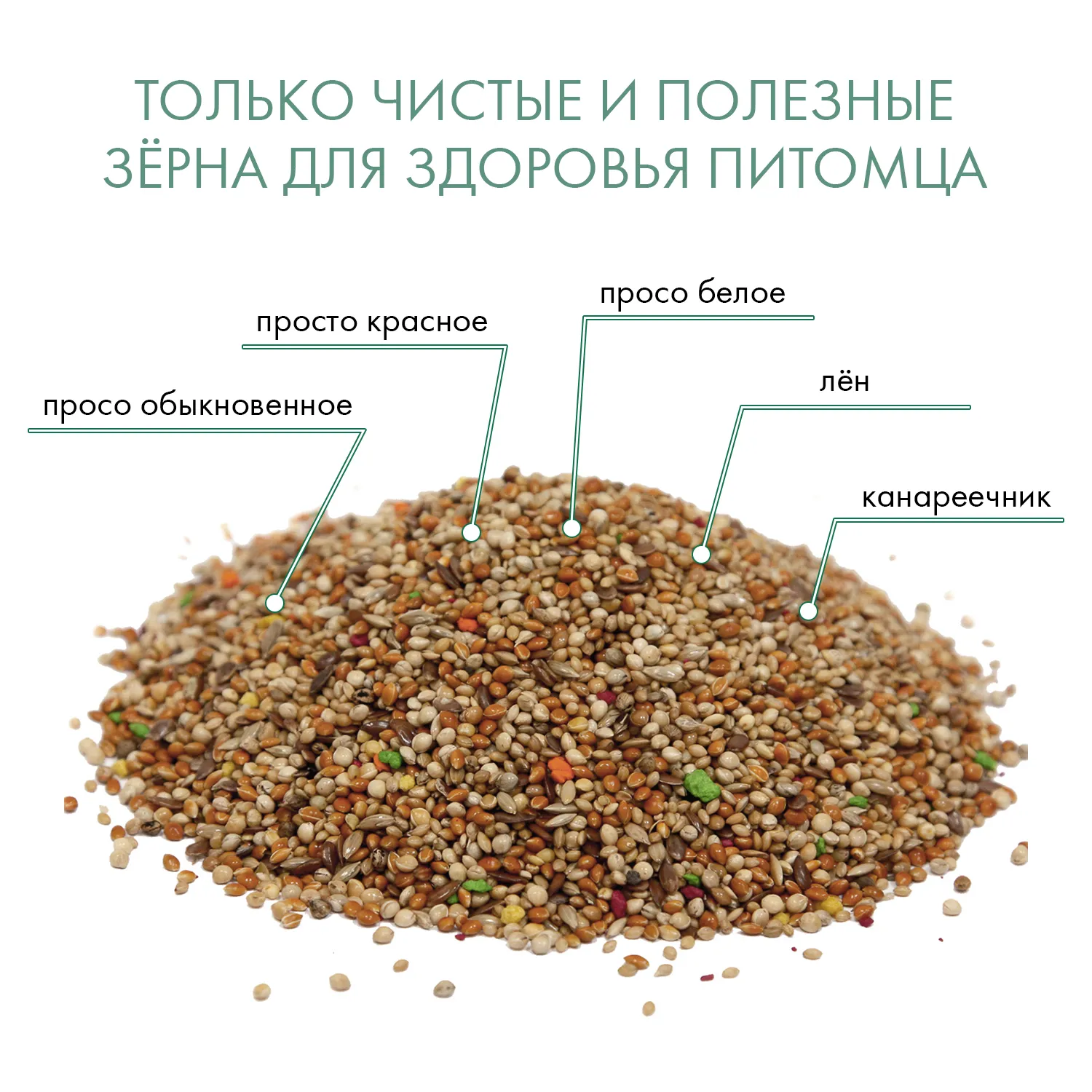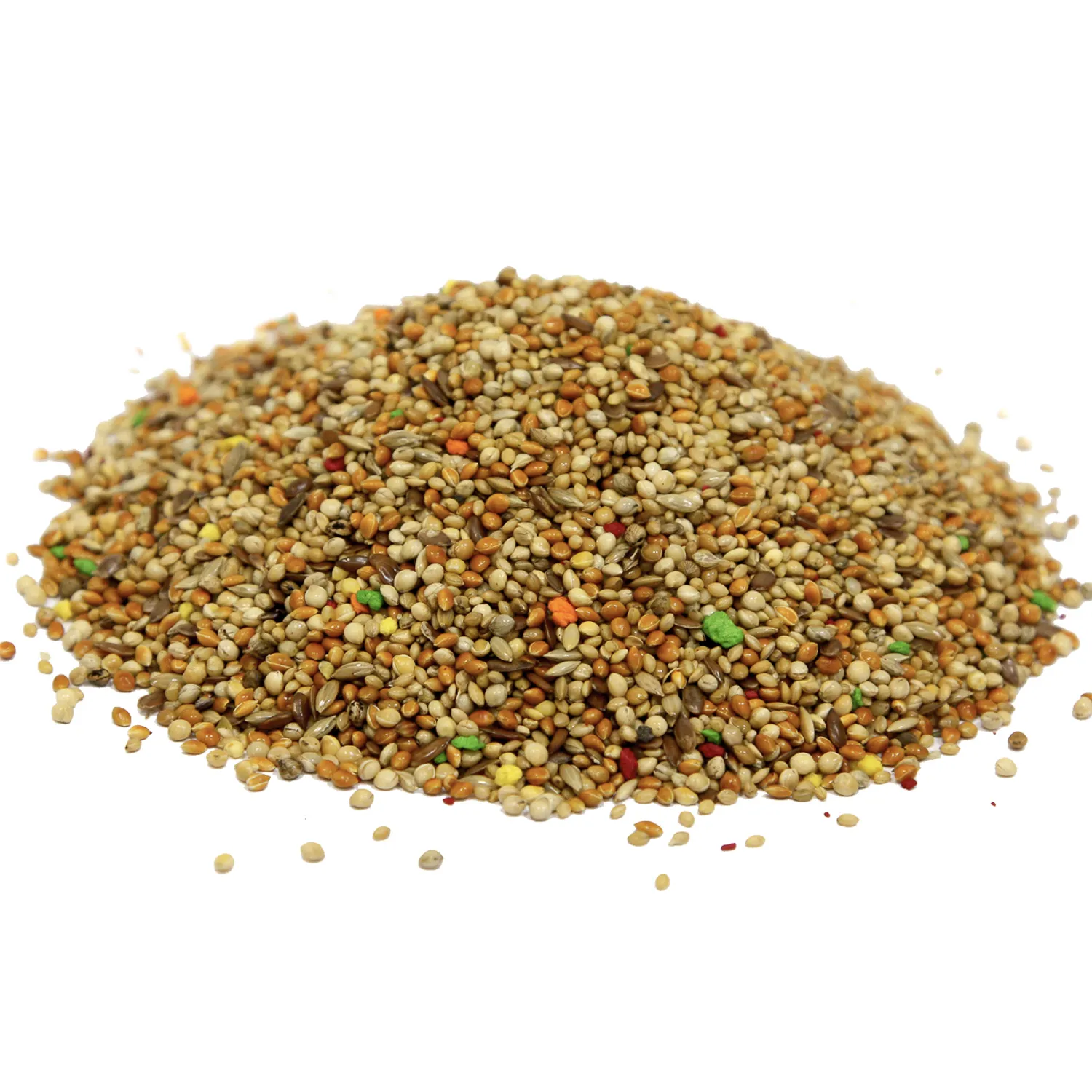 Классическая смесь для экзотических птиц. В состав входит красное, белое, желтое просо, двукисточник тростниковый, лен, пекарные продукты.