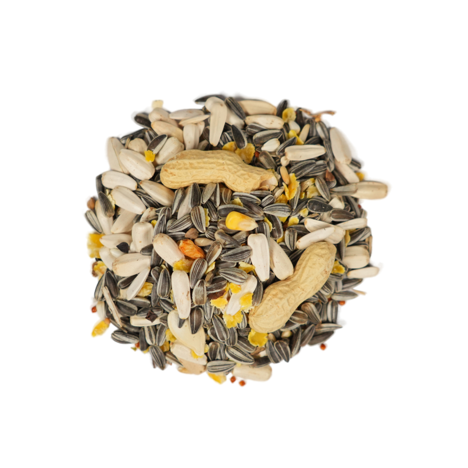 Семена: подсолнечник полосатый, очищенный овёс, пшеница, кукуруза, подсолнечник белый, сафлор, ячмень, хлопья кукурузы, гречиха, дробленый рис, семя тыквы, арахис цельный, цельный острый перец чили.