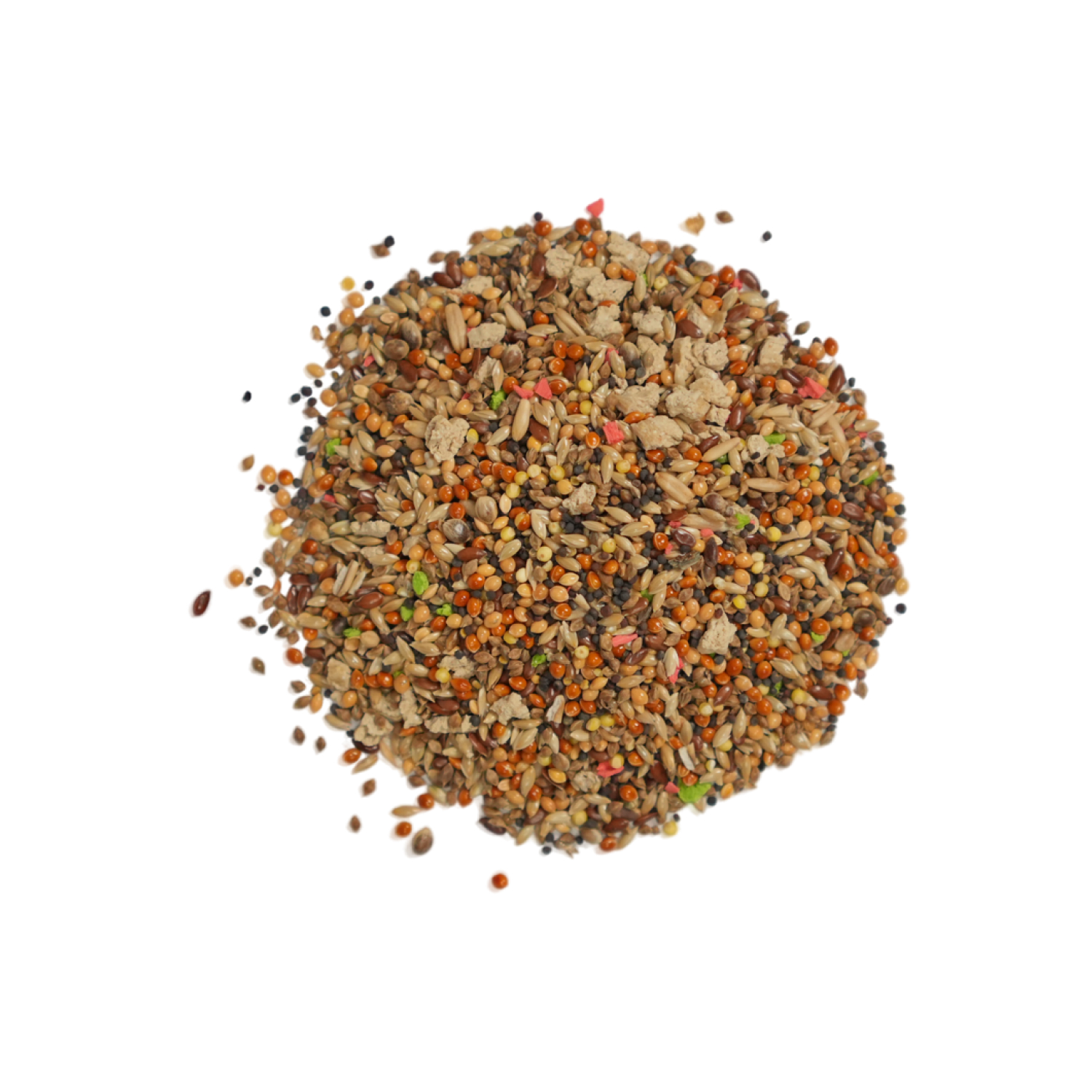 семя канареечное, просо красное, просо желтое, семена пайзы, рапс, овес голозерный, витаминные гранулы, юкка шидигера, семена льна, семена конопли технической, комплекс пробиотиков, натуральный адсорбент - дрожжи (S.cerevisae)