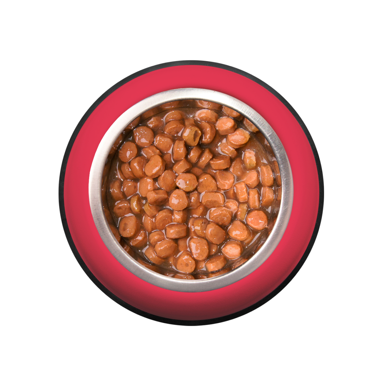 размер кусочков отлично подходит для маленьких и средних пород собак;