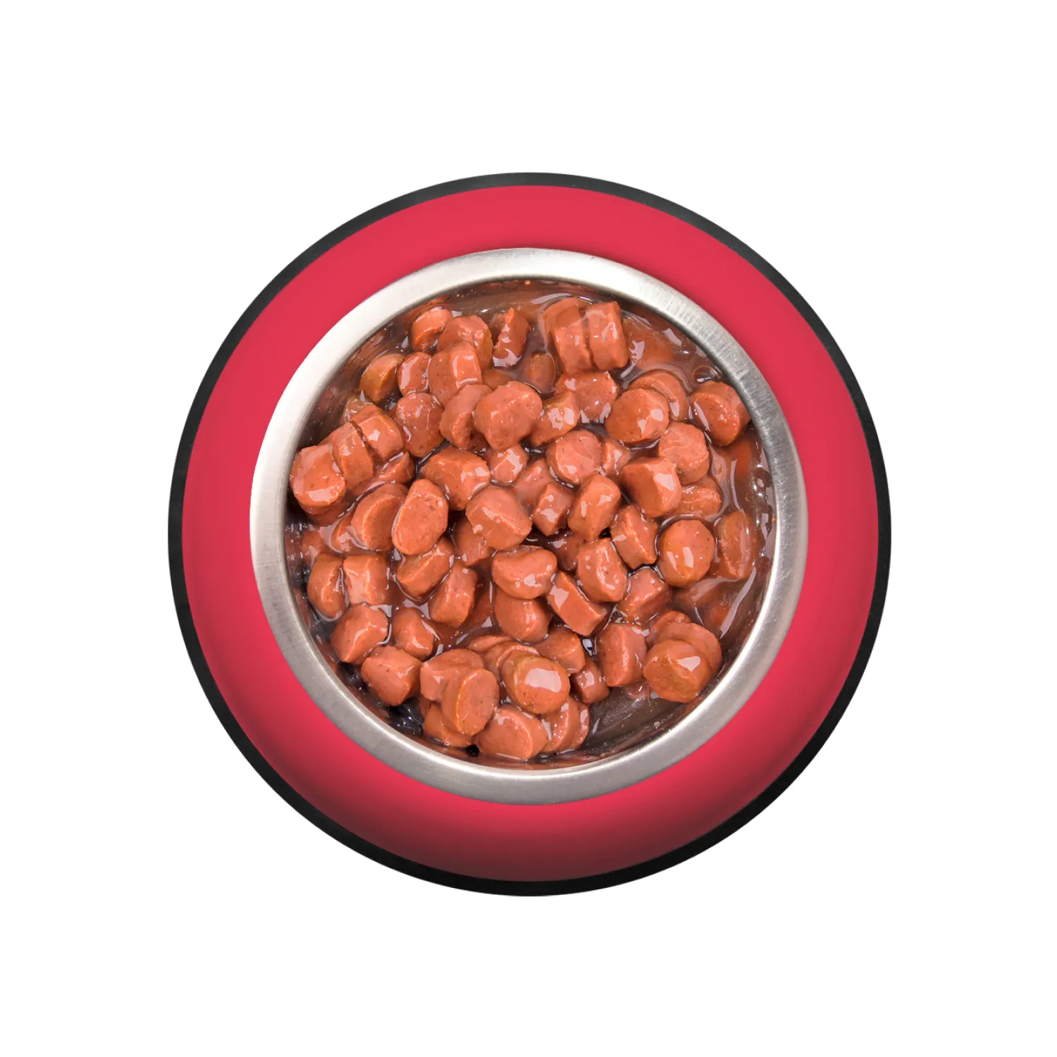 Знакомьтесь! Такса Макс – наш инспектор вкуса! Он выбирает 100% натуральный, полезный, а, главное, такооооой вкусный корм с томленой телятиной в соусе не просто так!