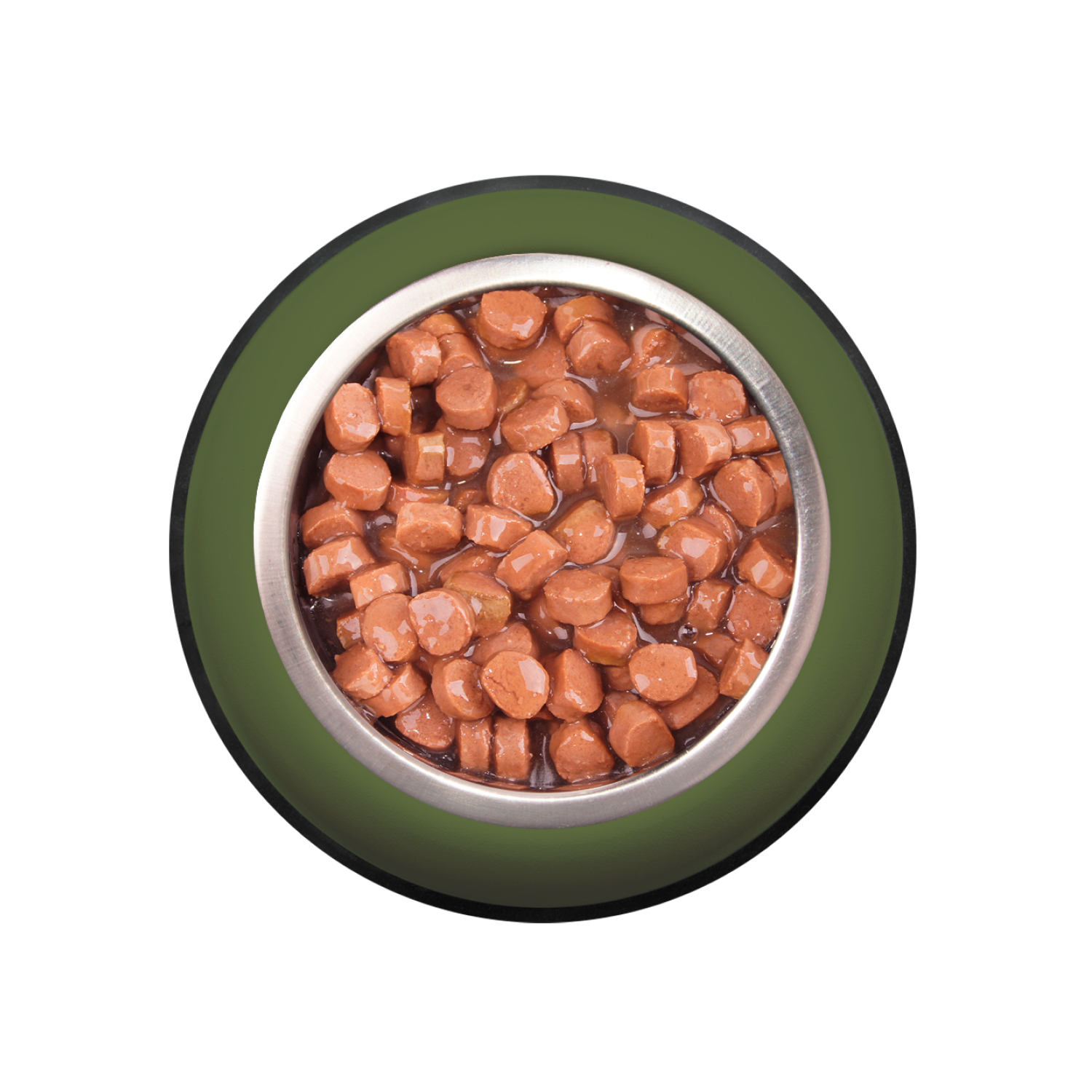 размер кусочков отлично подходит для маленьких и средних пород собак;
