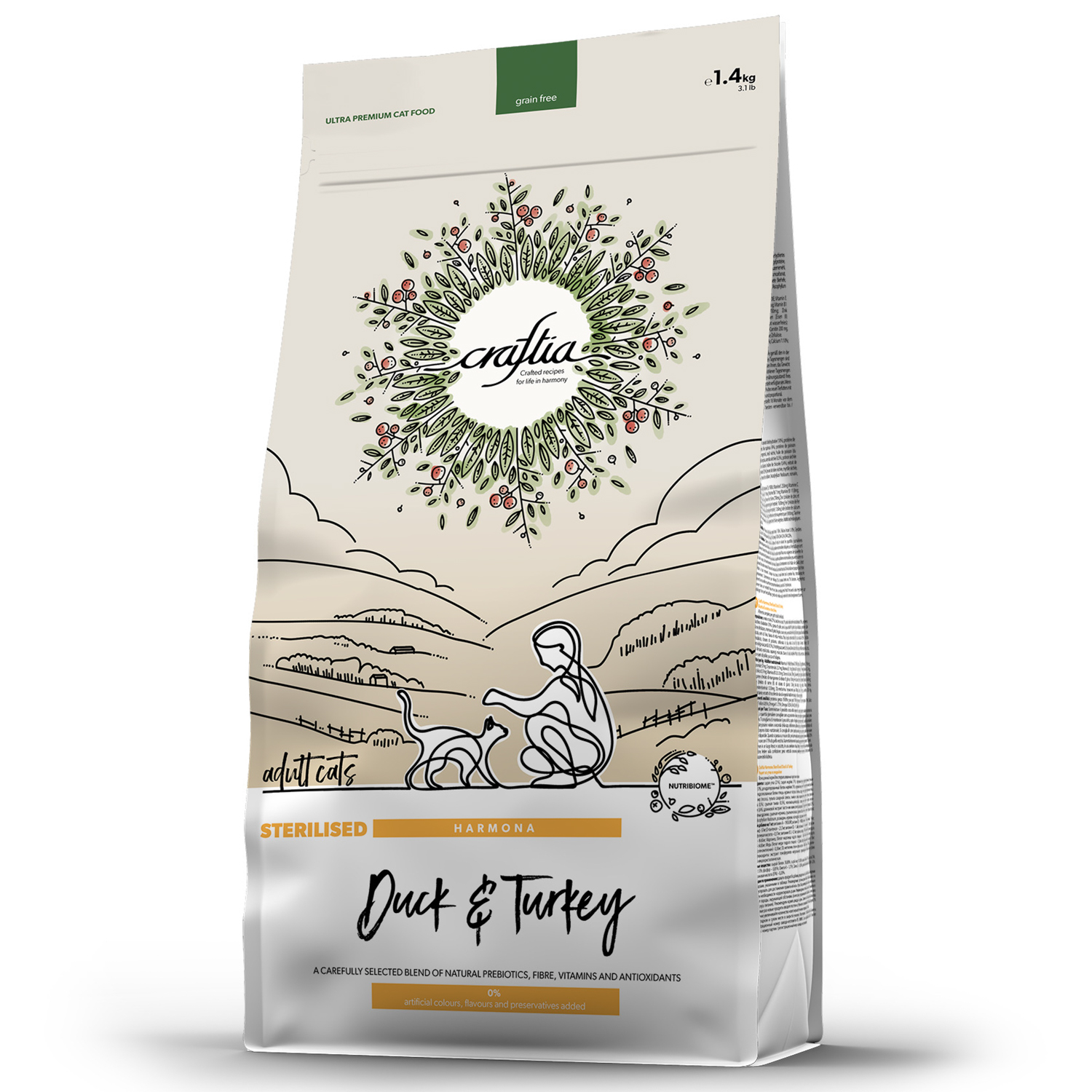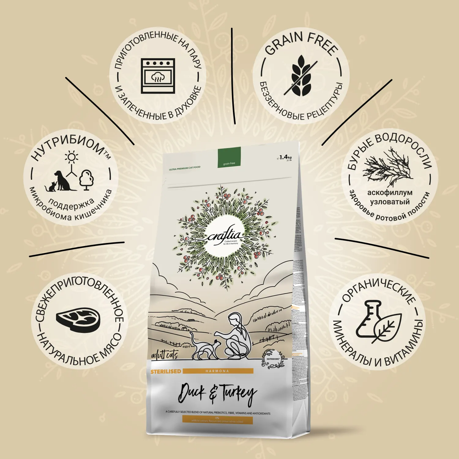 Сухой корм CRAFTIA HARMONA для стерилизованных кошек из утки и индейки 1,4 кг
