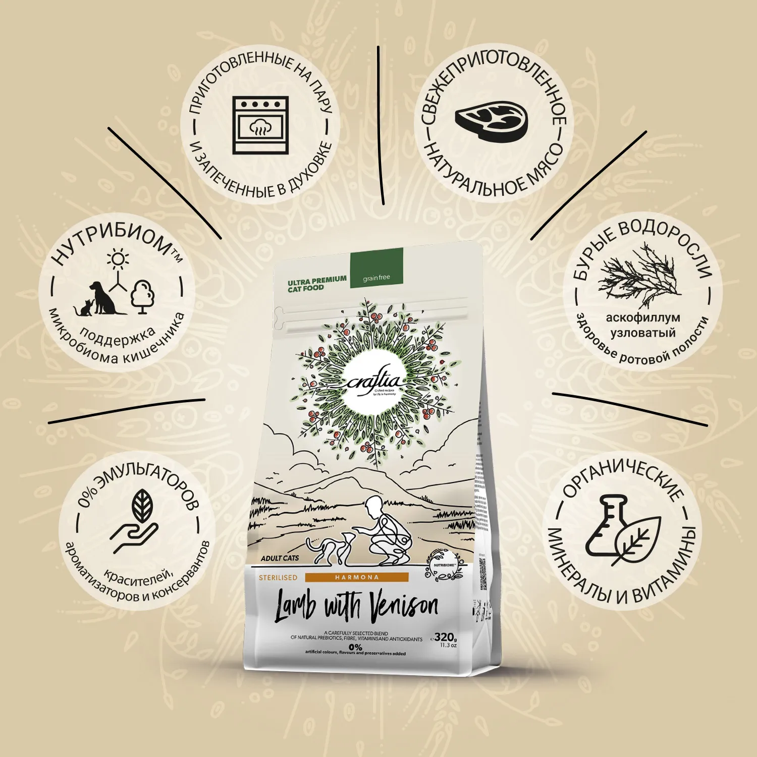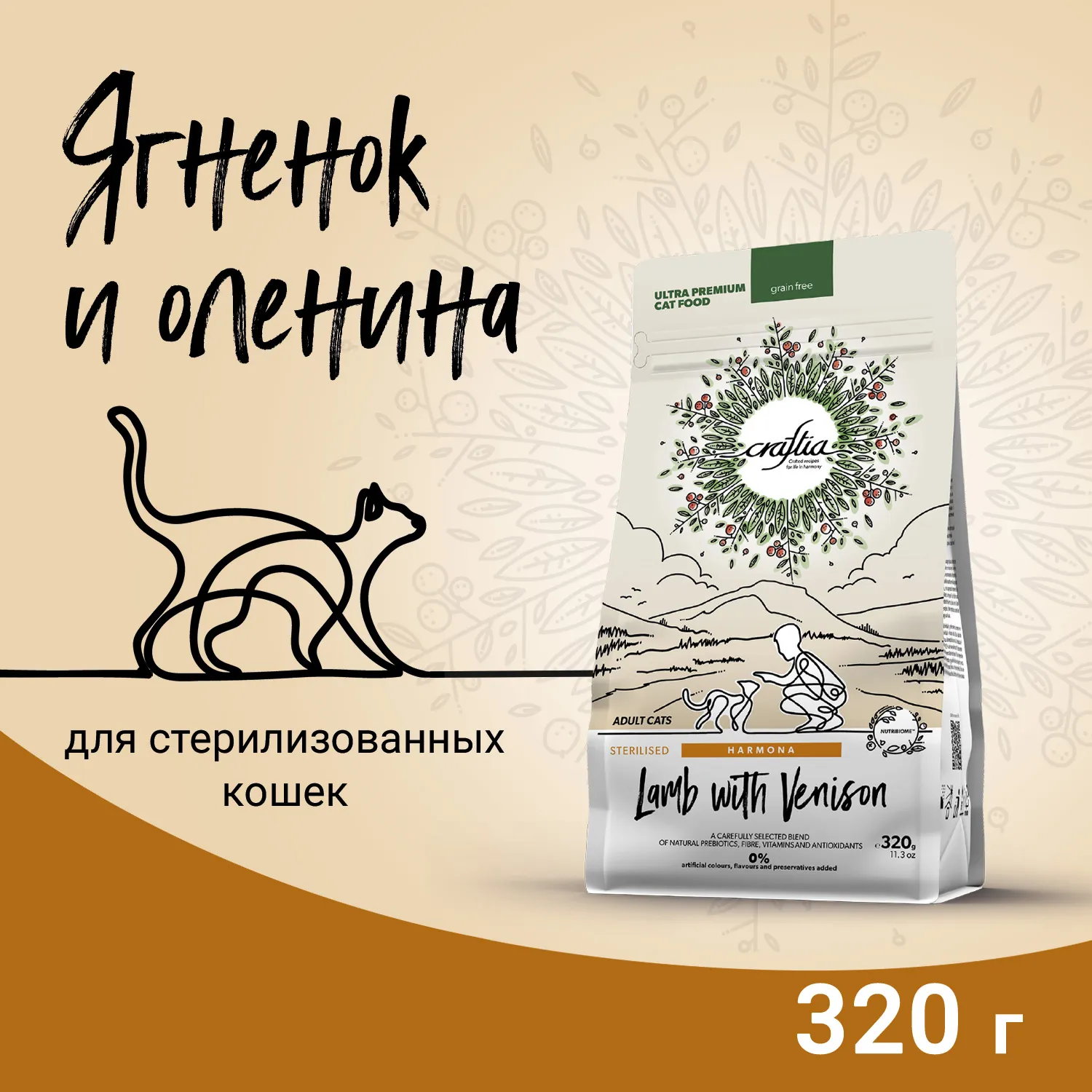 Сухой корм CRAFTIA HARMONA для стерилизованных кошек из ягненка с олениной 320 г