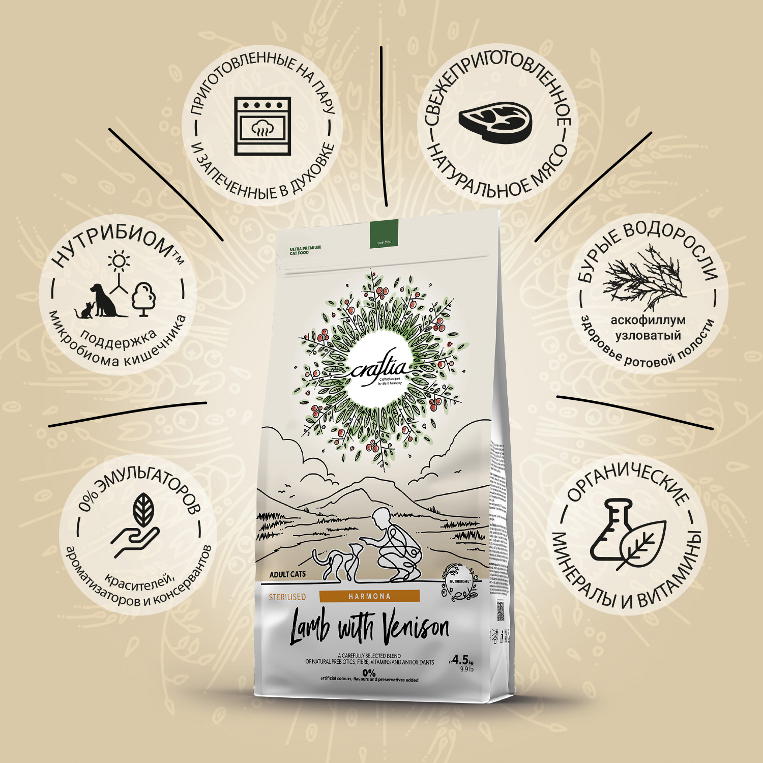 Сухой корм CRAFTIA HARMONA для стерилизованных кошек из ягненка с олениной 4,5 кг