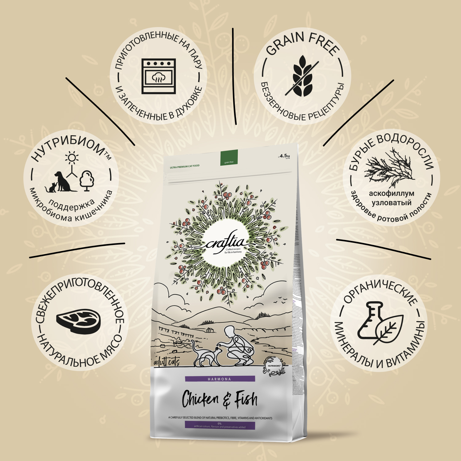 Сухой корм CRAFTIA HARMONA для взрослых кошек из курицы и рыбы 4,5 кг