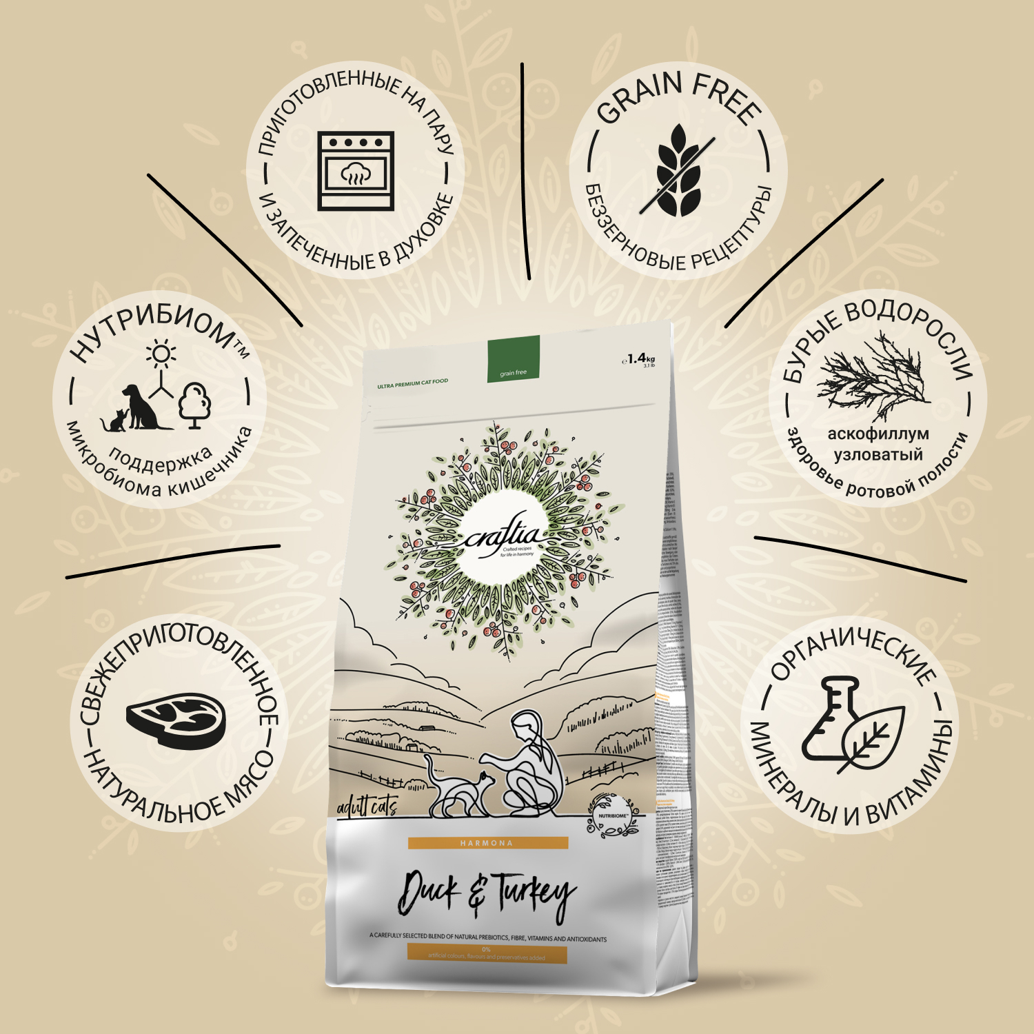 Сухой корм CRAFTIA HARMONA для взрослых кошек из утки и индейки 1,4 кг