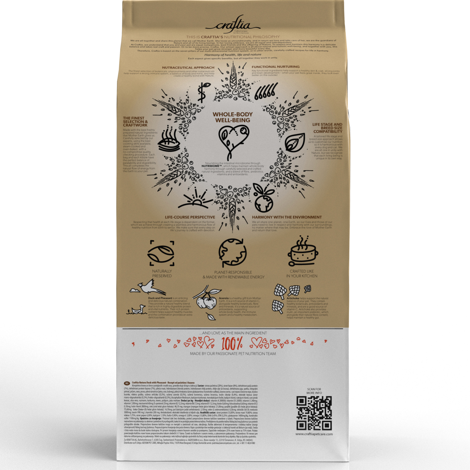 CRAFTIA NATURA сухой корм для щенков миниатюрных и мелких пород из утки с фазаном .