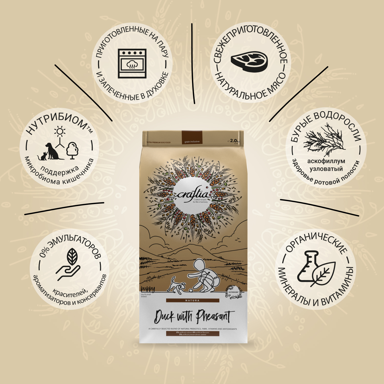 CRAFTIA NATURA — корм для собак ультрапремиум класса, созданный с любовью к природе.