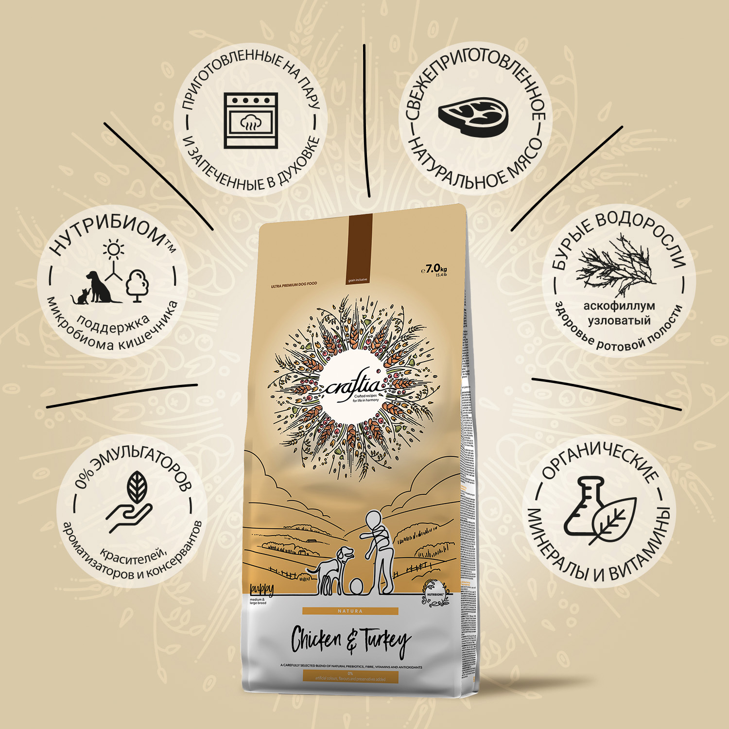 Сухой корм CRAFTIA NATURA для щенков средних и крупных пород из курицы и индейки 7 кг