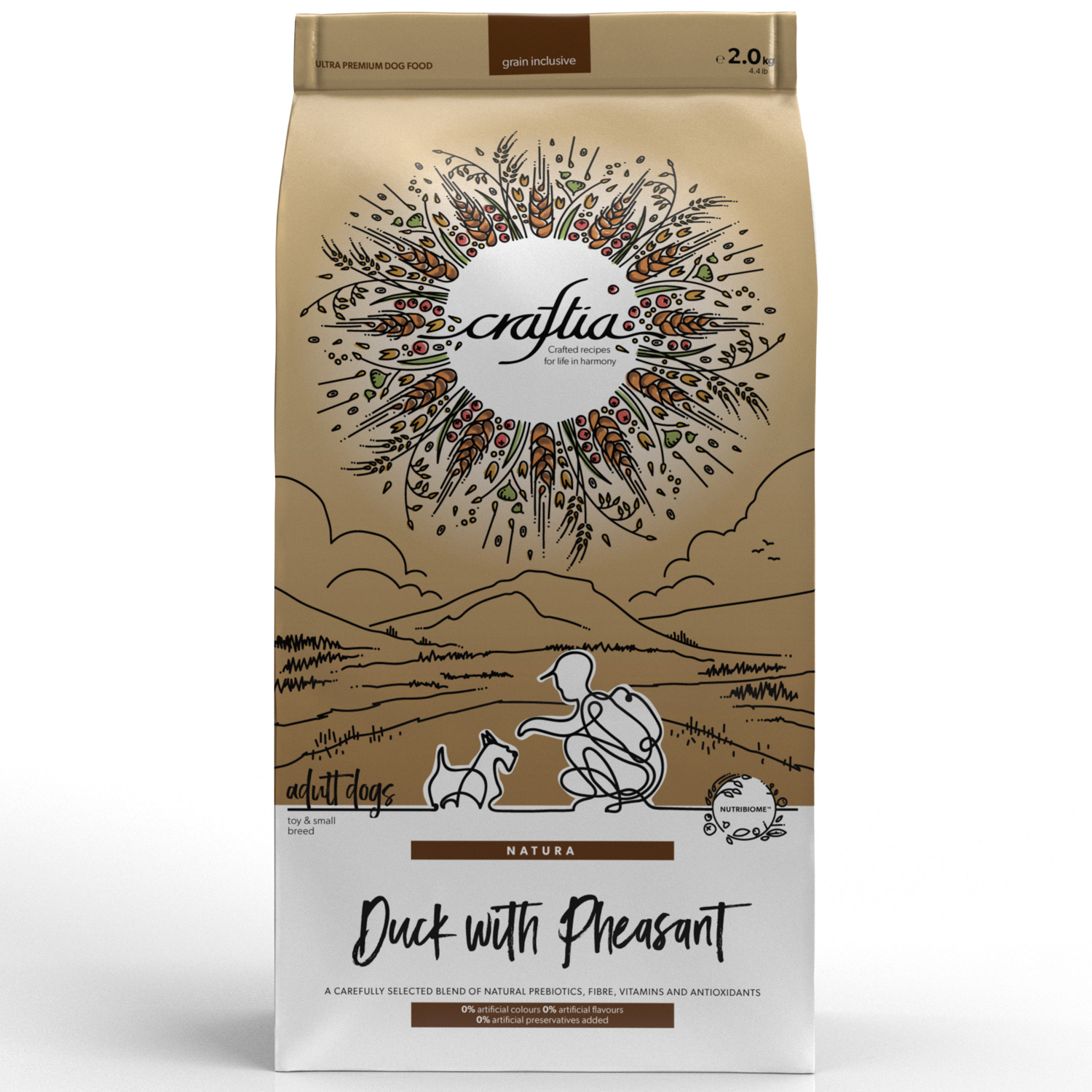 Сухой корм CRAFTIA NATURA для взрослых собак миниатюрных и мелких пород из утки с фазаном 2 кг