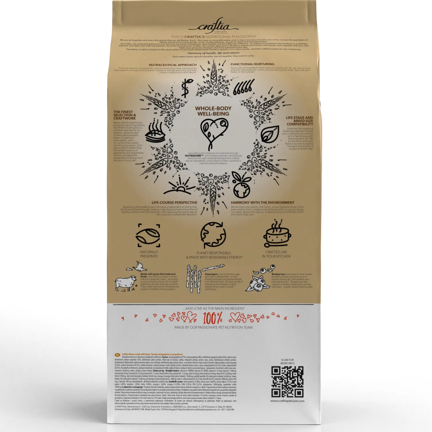 CRAFTIA NATURA Сухой корм для взрослых собак миниатюрных и мелких пород из ягненка с перепелкой.