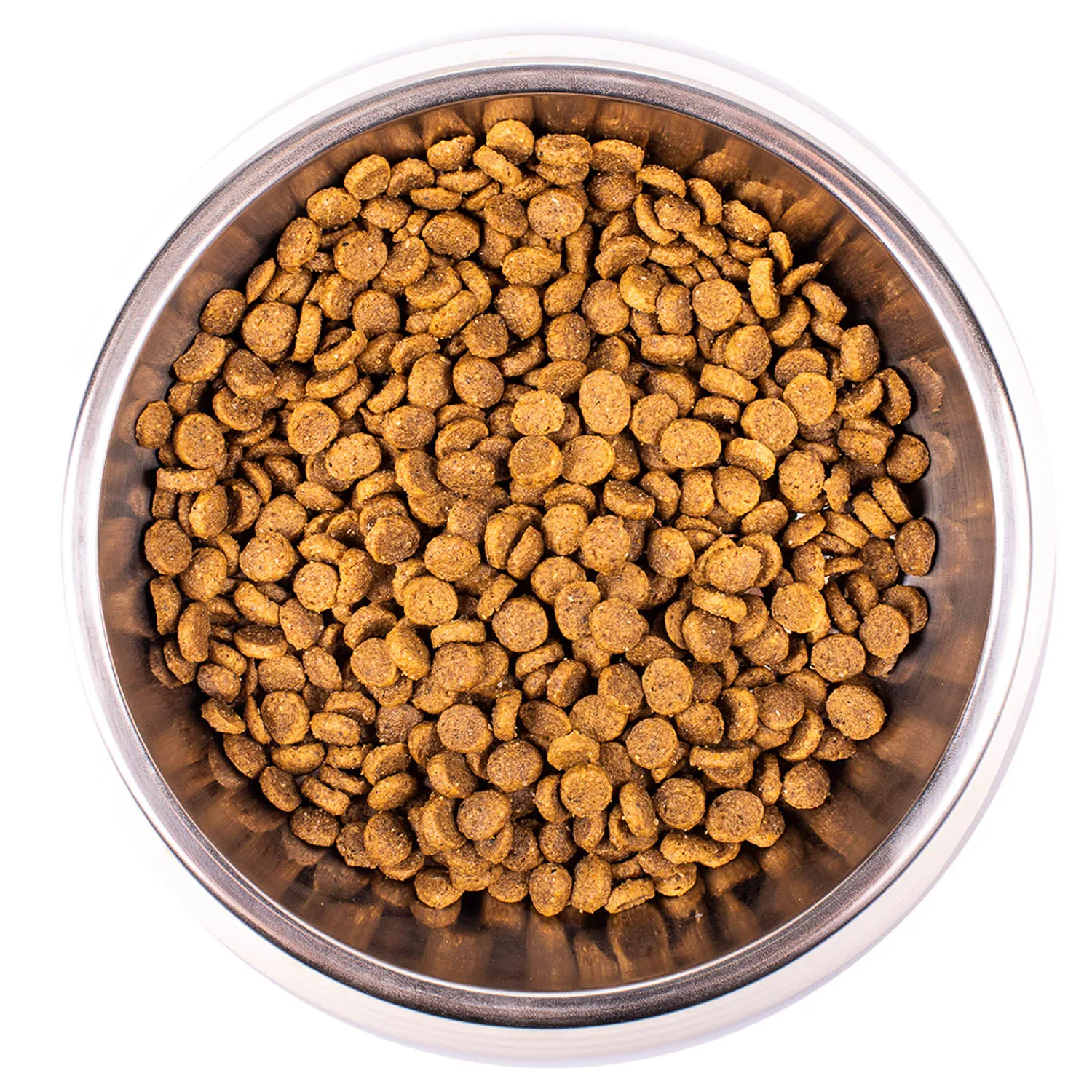 Курица (дегидрированное мясо 26%, свежее мясо 10%), рис, животный жир (очищенный на 99,5% куриный жир), кукуруза, гидролизованный животный белок (печень), сухая свекольная пульпа, кукурузный глютен, сухое яйцо (2%), рыба (дегидрированный лосось), рыбий жир 2% (очищенное на 99,5% масло лосося), минеральные вещества, пивные дрожжи, гороховая клетчатка, дрожжевые продукты (источник M.O.S. 1%), ксилоолигосахариды (X.O.S. 0,3%), шиповник (0,1%), юкка Шидигера (0,1%).