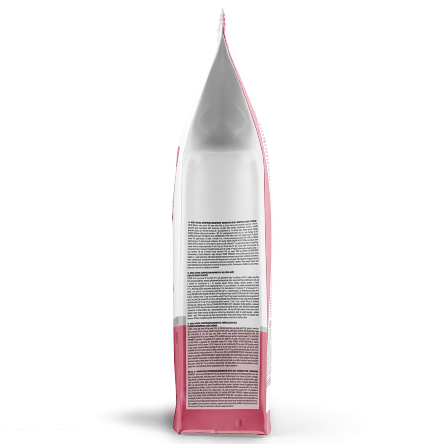 Говядина (дегидрированное 30% и свежее мясо 10%), рис, животный жир (куриный жир, очищенный на 99,5%), кукуруза, кукурузный глютен, картофельный белок, картофель, гидролизованный животный белок (печен ь), сухая свекольная пульпа, рыбий жир (лососевый жир), водорослевое масло (Schizochytrium sp. 1%), пивные дрожжи, гороховая клетчатка, минеральные вещества, дрожжевые продукты (МОS маннанолигосахариды 1%), ксилоолигосахариды (XOS 0,3%), юкка Шидигера (0,1%), продукты переработки растений (шиповник 0,1%).ПИТАТЕЛЬНАЯ ЦЕННОСТЬ: сырой белок: 34%, сырая клетчатка: 3%, сырой жир: 19%, сырая зола: 7,5%, кальций: 1,9%, фосфор: 1,3%, омега-3 жирные кислоты: 0,6%, ДГК (DHA): 0,08%, омега-6 жирные кислоты: 5%