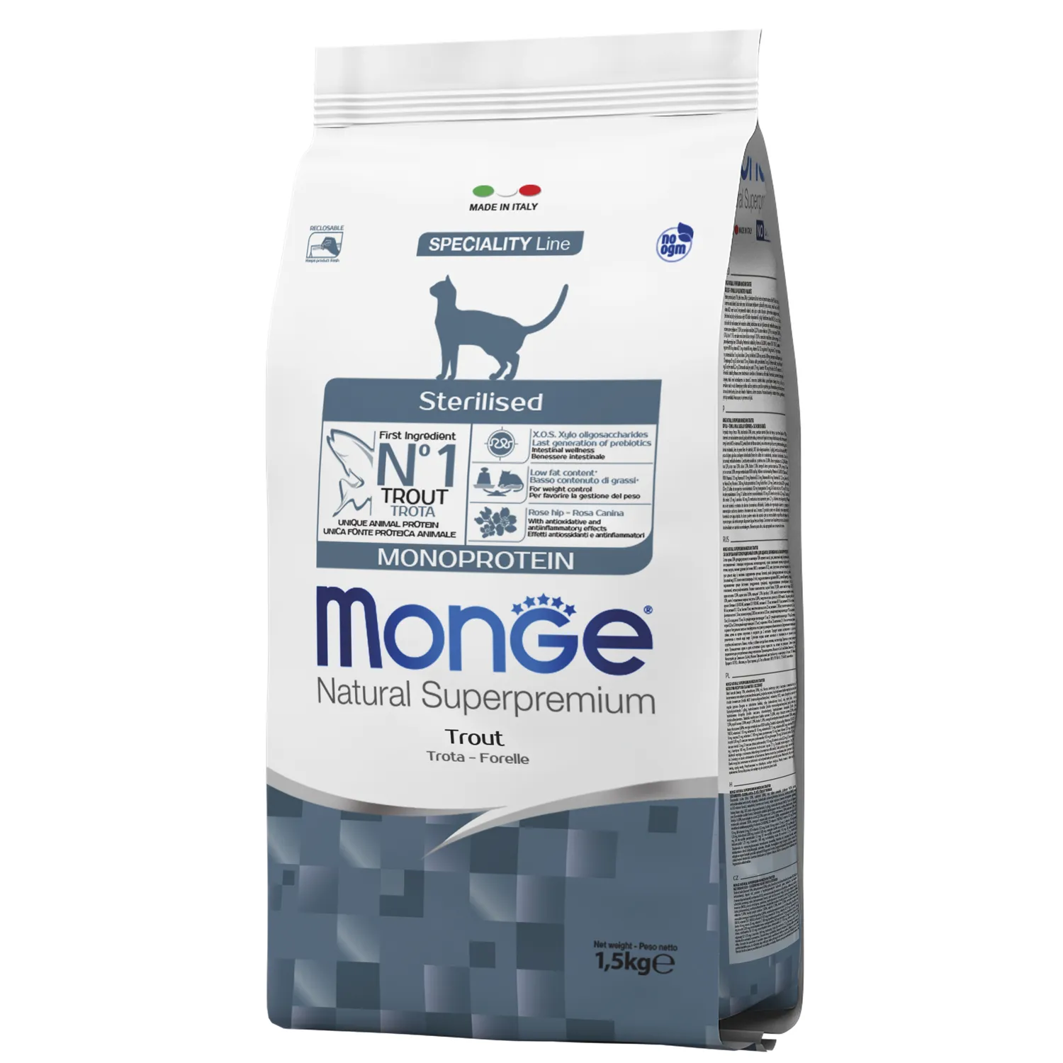Сухой корм Monge Cat Speciality Line Monoprotein Sterilised для стерилизованных кошек, из форели 1,5 кг