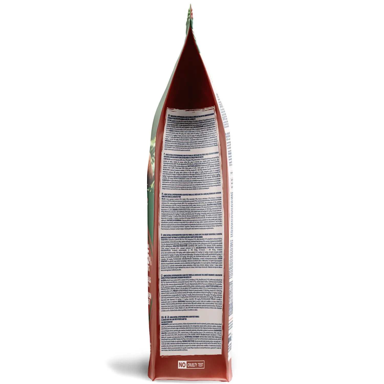 Мясо ягненка (дегидрированного 38%, свежее мясо 10%), картофель (14%), животный жир (14%) (очищенное куриное масло 99,5%), картофельный белок, пивные дрожжи, горох (4%), сухая свекольная пульпа, гидролизованный животный белок (3%), маннанолигосахариды (M.O.S. 1%), ксилоолигосанхариды (X.O.S. 0,3%), юкка Шидигера (0,3%), спирулина (0,3%), глюкозамин (0,057%), хондроитина сульфат (0,04%), сухой молочный белок.Питательная ценность: сырой белок 28%, сырая клетчатка 2,2%, сырой жир 16,5%, сырая зола 7,5%, омега-3 жирные кислоты 0,2%, омега-6 жирные кислоты 3,4%.