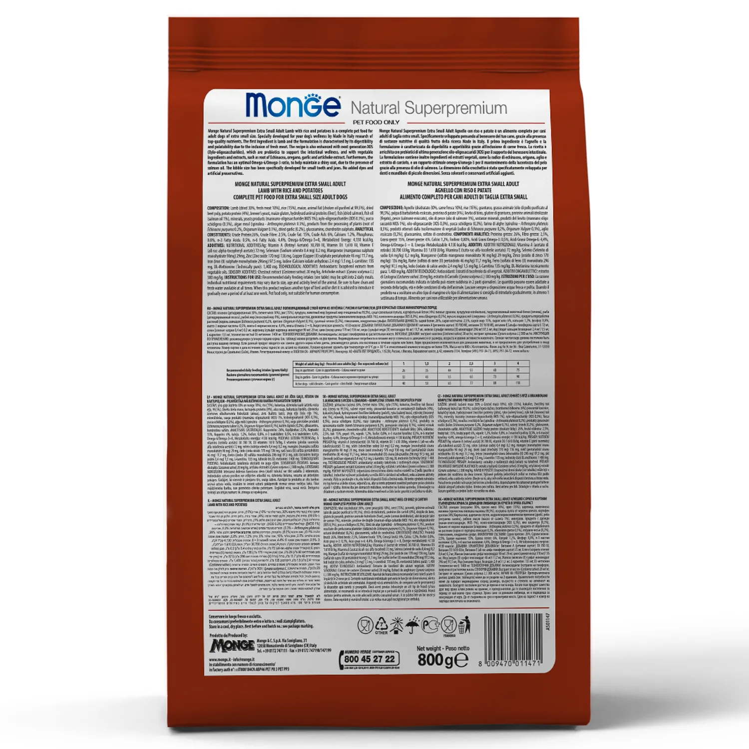 Сухой корм Monge Dog Speciality Line Extra Small для взрослых собак миниатюрных пород ягненок с рисом и картофелем 800 г