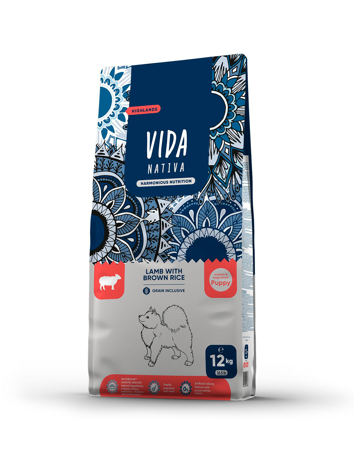Полнорационный сухой корм суперпремиум-класса Vida Nativa с ягненком и бурым рисом разработан с учетом потребностей щенков средних и крупных пород.