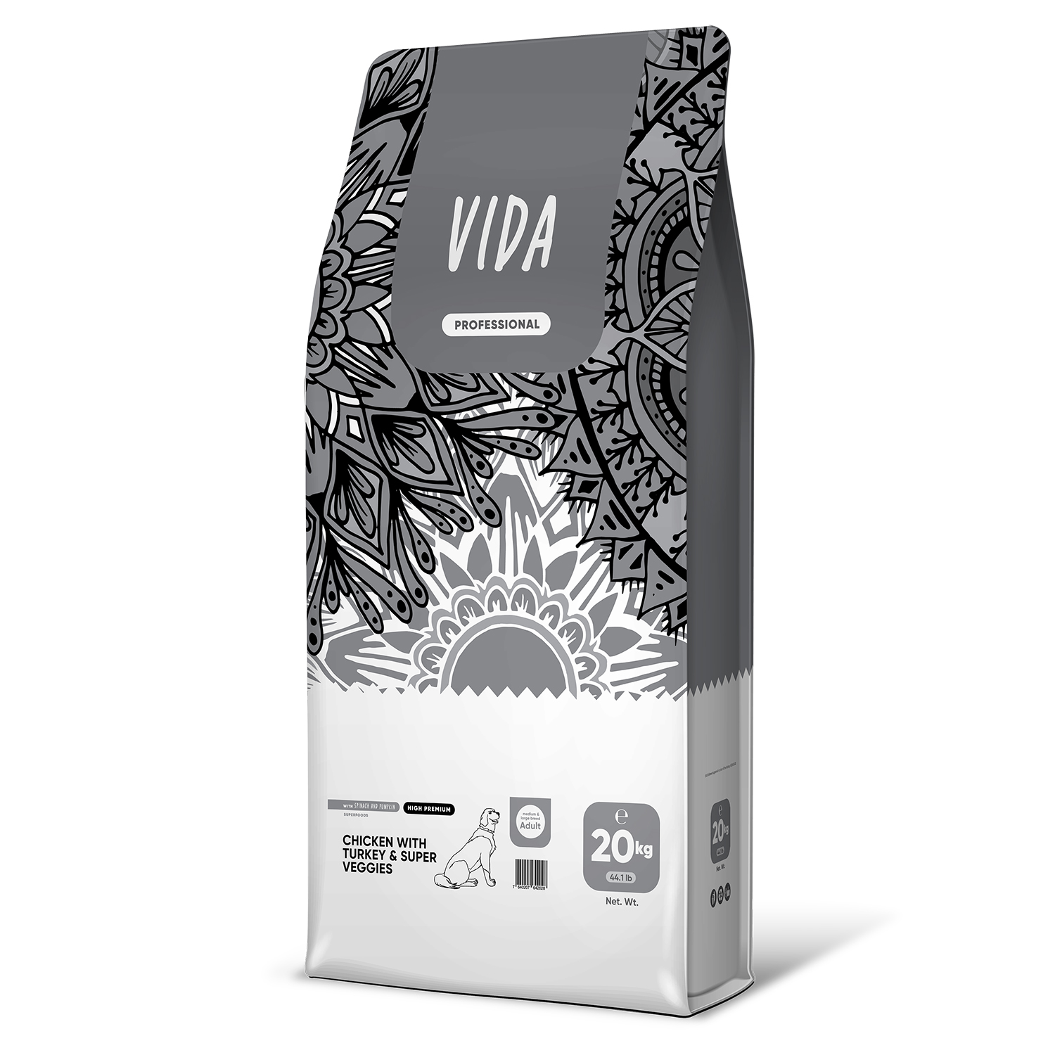 Полнорационный сухой корм суперпремиум-класса VIDA PROFESSIONAL HIGH PREMIUM из курицы с индейкой и овощами разработан с учётом потребностей взрослых собак средних и крупных пород.