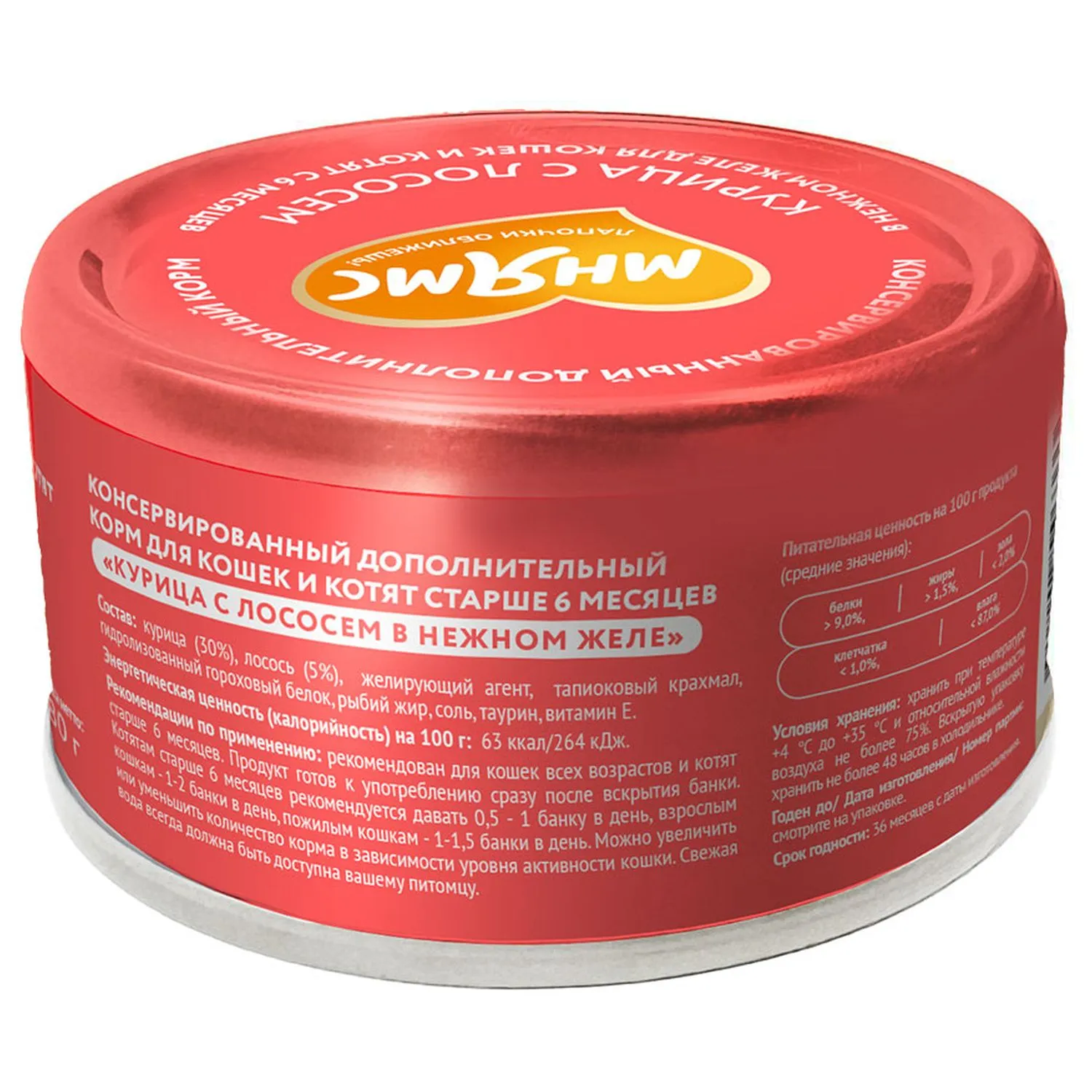 Влажный дополнительный корм Мнямс На каждый день для кошек и котят старше 6 месяцев "курица с лососем в нежном желе" 80 г