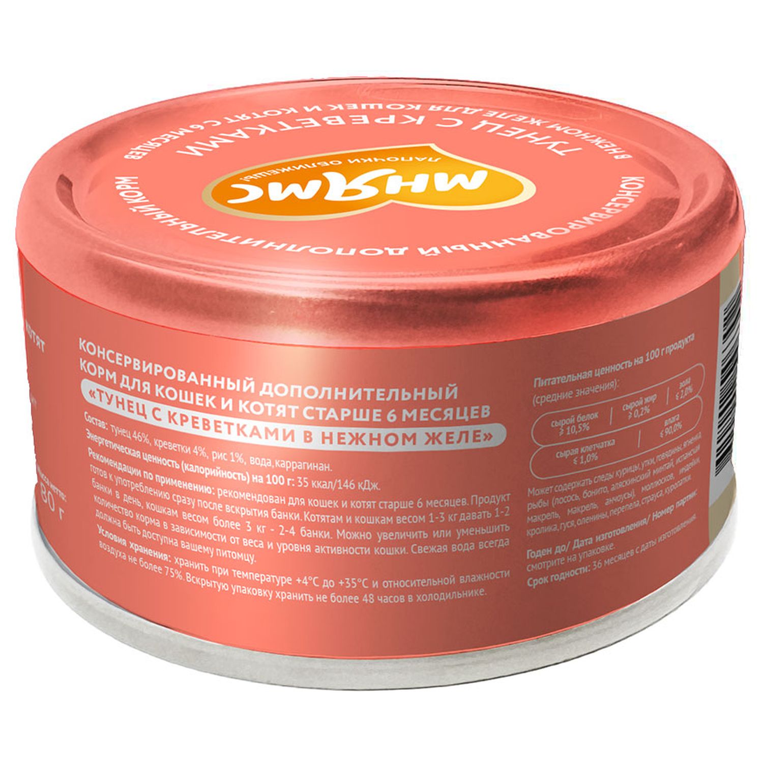 Влажный дополнительный корм Мнямс На каждый день для кошек и котят старше 6 месяцев "тунец с креветками в нежном желе" 80 г