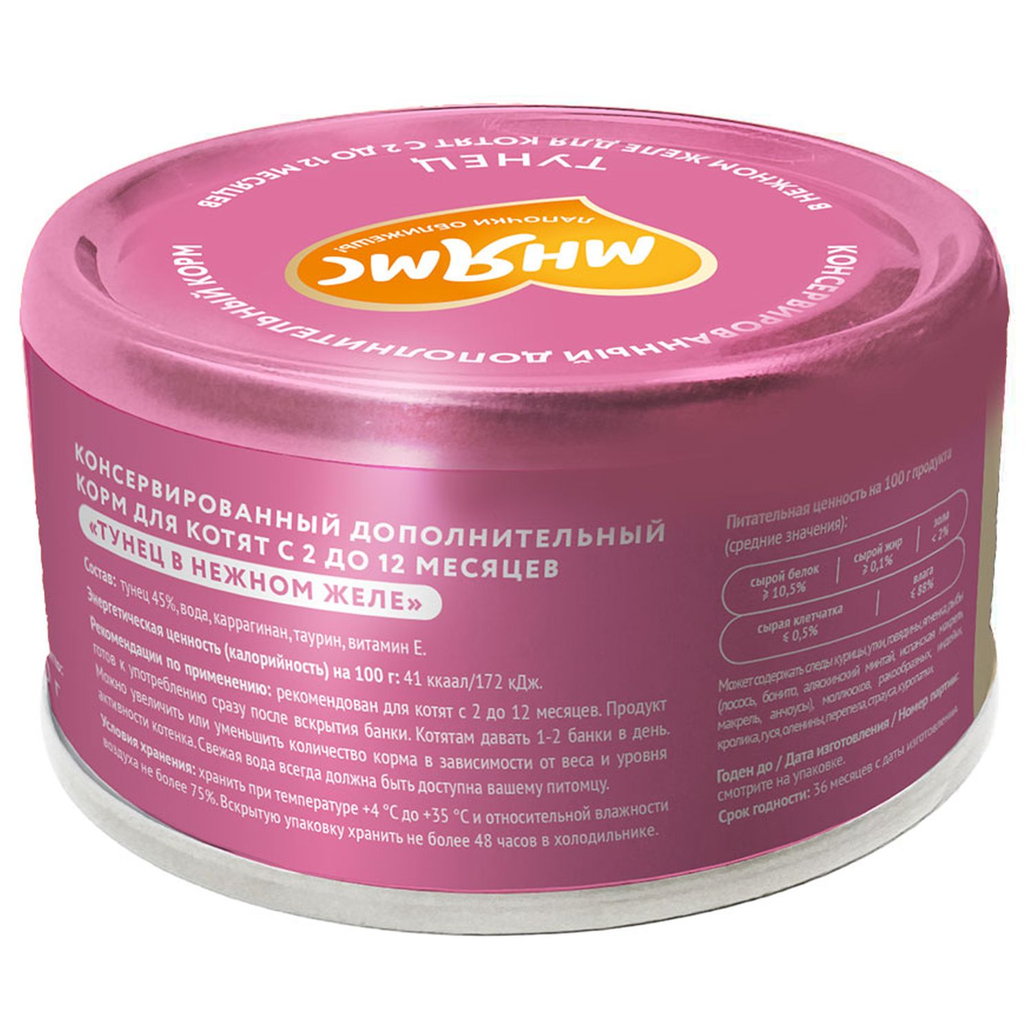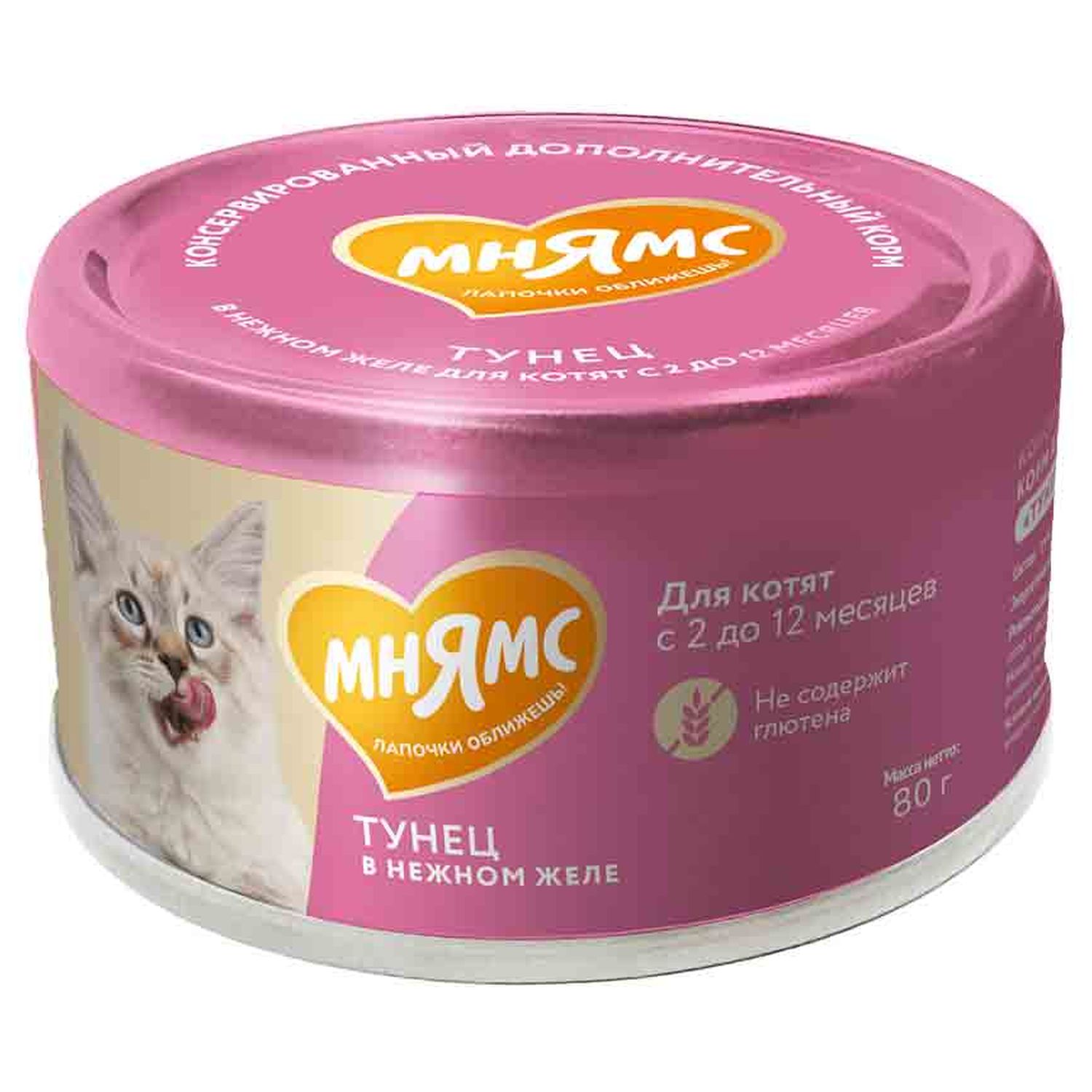 Влажный дополнительный корм Мнямс На каждый день для котят с 2 до 12 месяцев "тунец в нежном желе" 80 г
