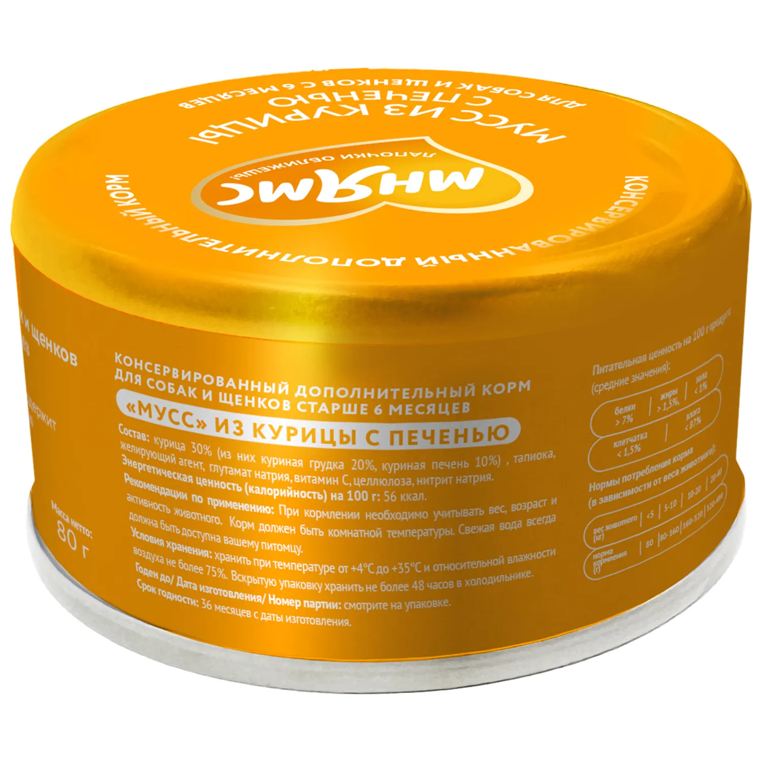 Влажный дополнительный корм Мнямс На каждый день Мусс из курицы с печенью для собак и щенков старше 6 месяцев 80 г