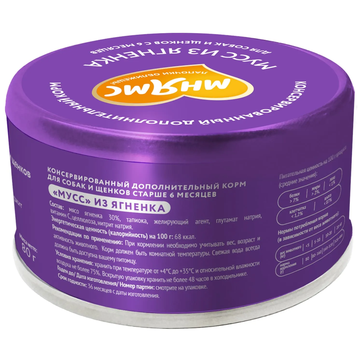 Влажный дополнительный корм Мнямс На каждый день Мусс из ягненка для собак и щенков старше 6 месяцев 80 г