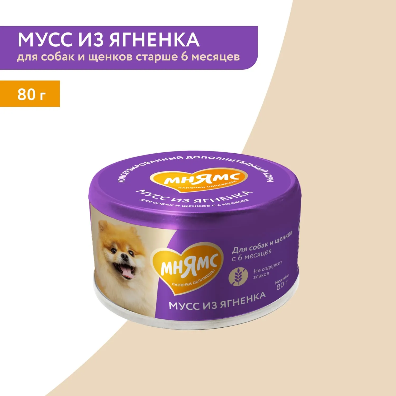 «Мнямс» консервированный дополнительный корм для собак и щенков старше 6 месяцев «мусс» из ягненка гарантирует, что ваш питомец получит только качественный и вкусный продукт, который прекрасно разнообразит рацион любимца, поддержит его здоровье и жизненную энергию.