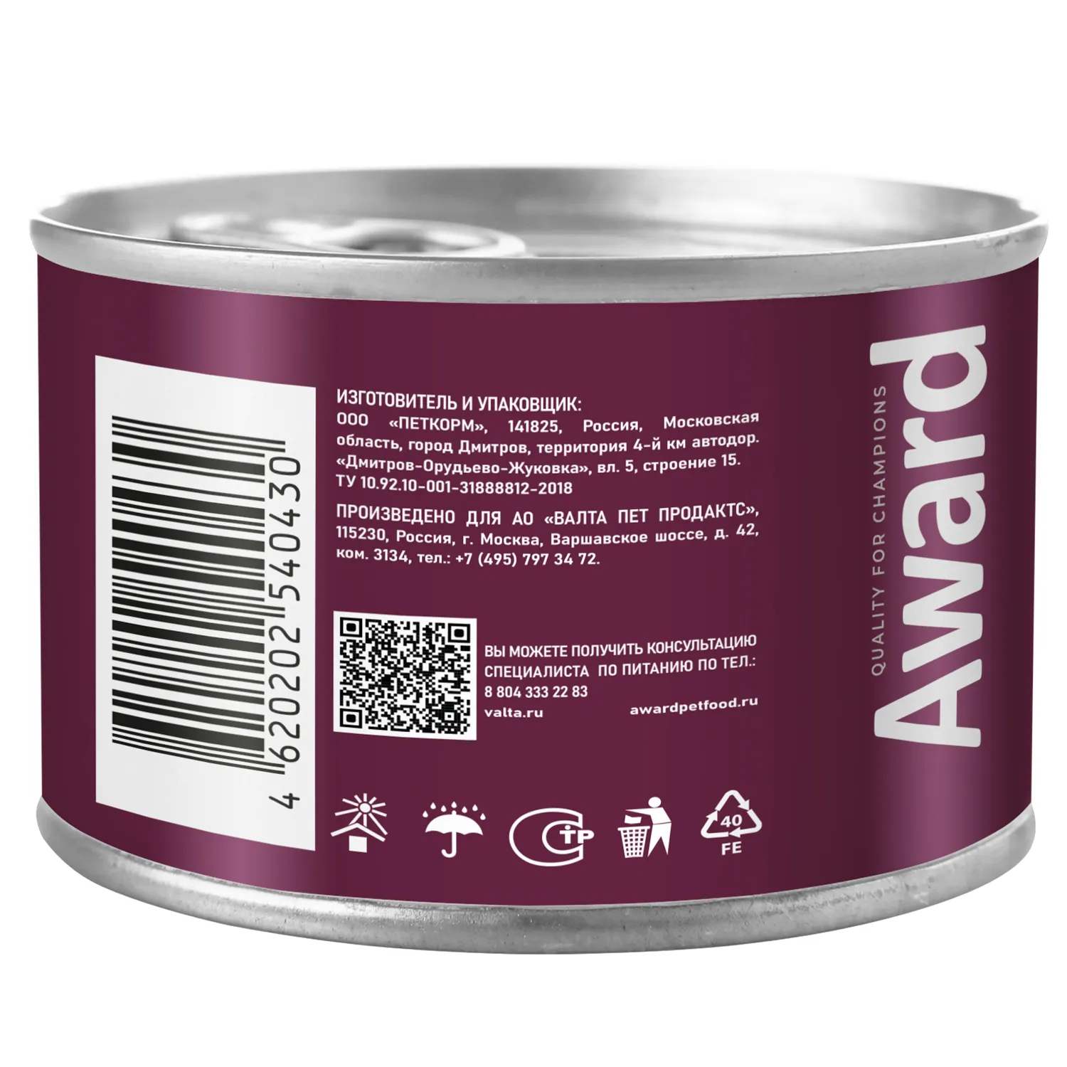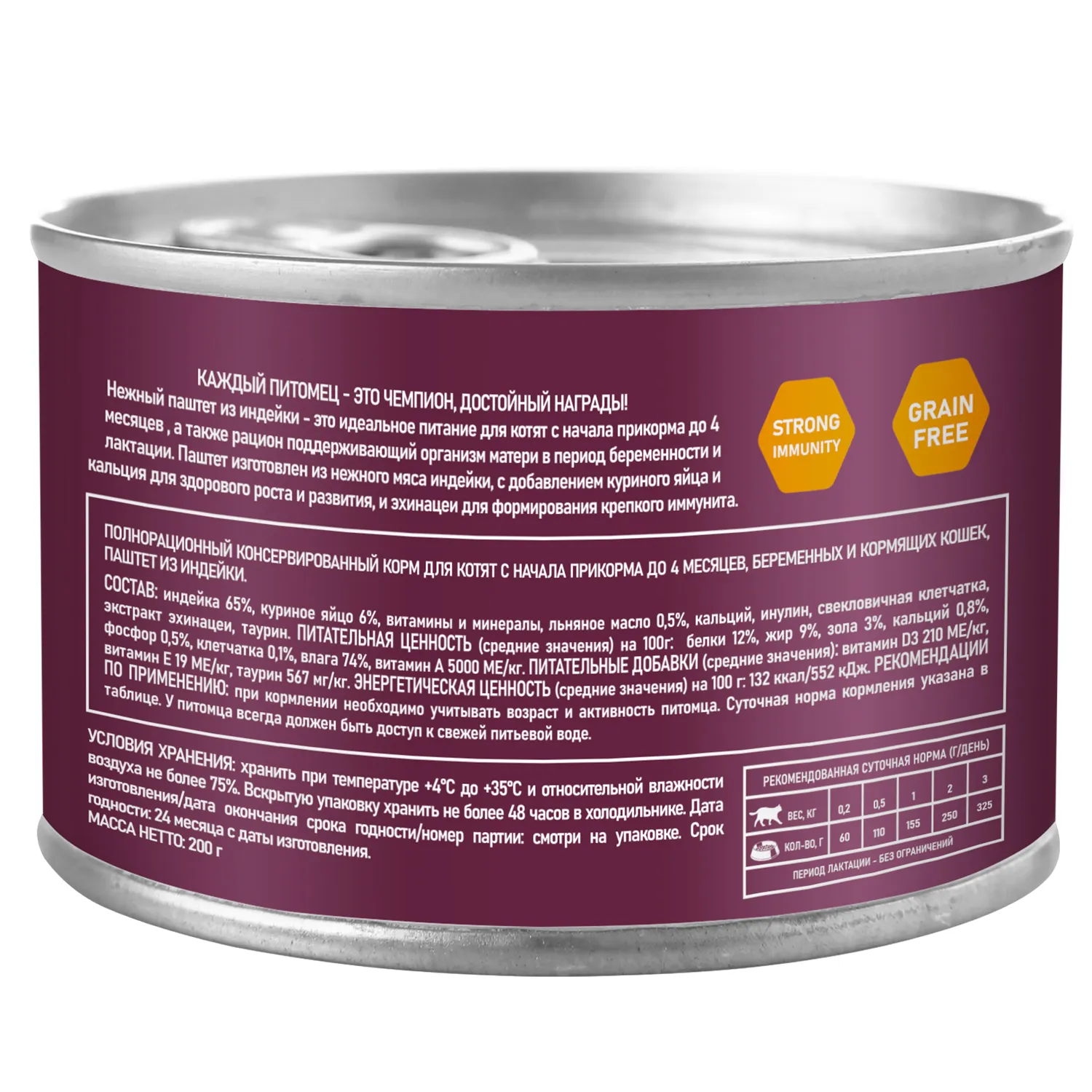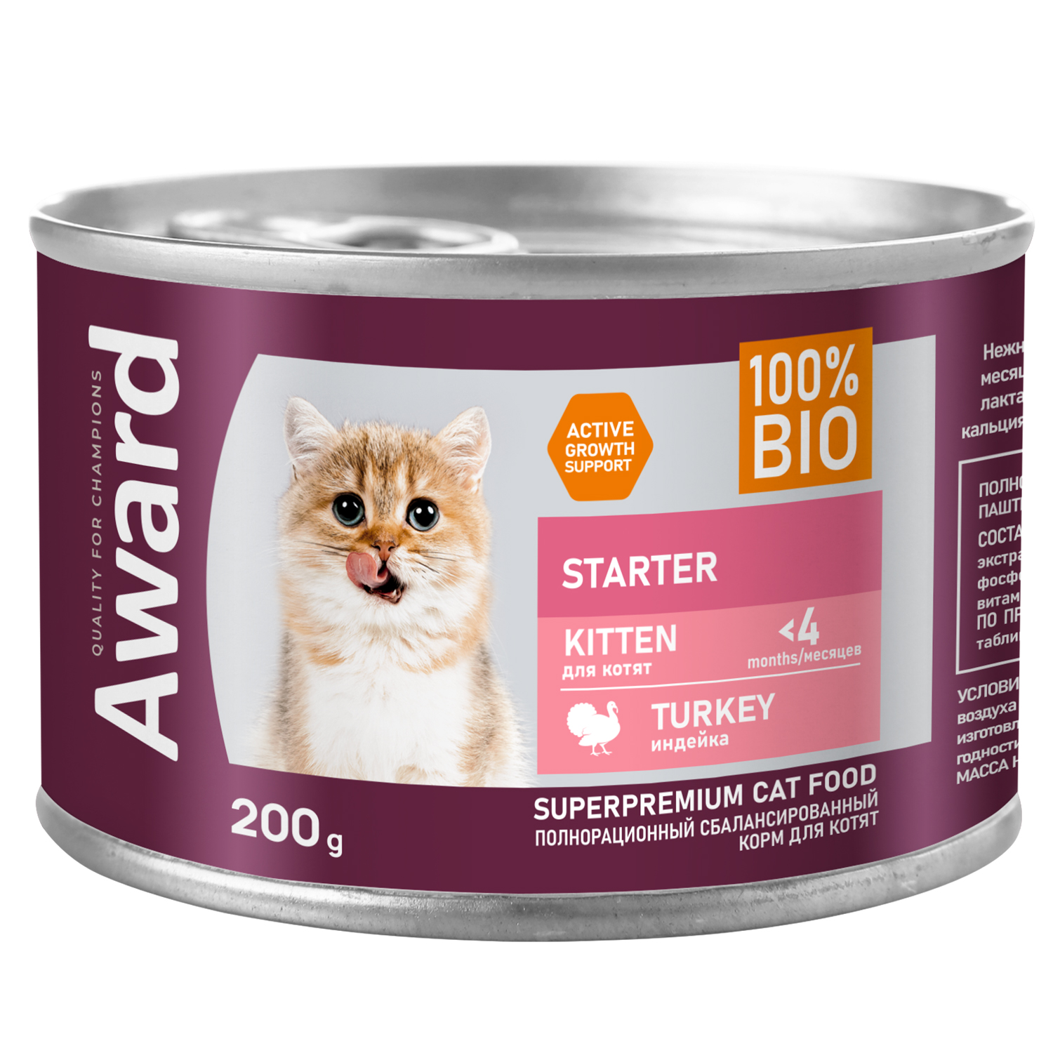 Влажный корм AWARD для котят с начала прикорма до 4 месяцев, беременных и кормящих кошек паштет из индейки 200г