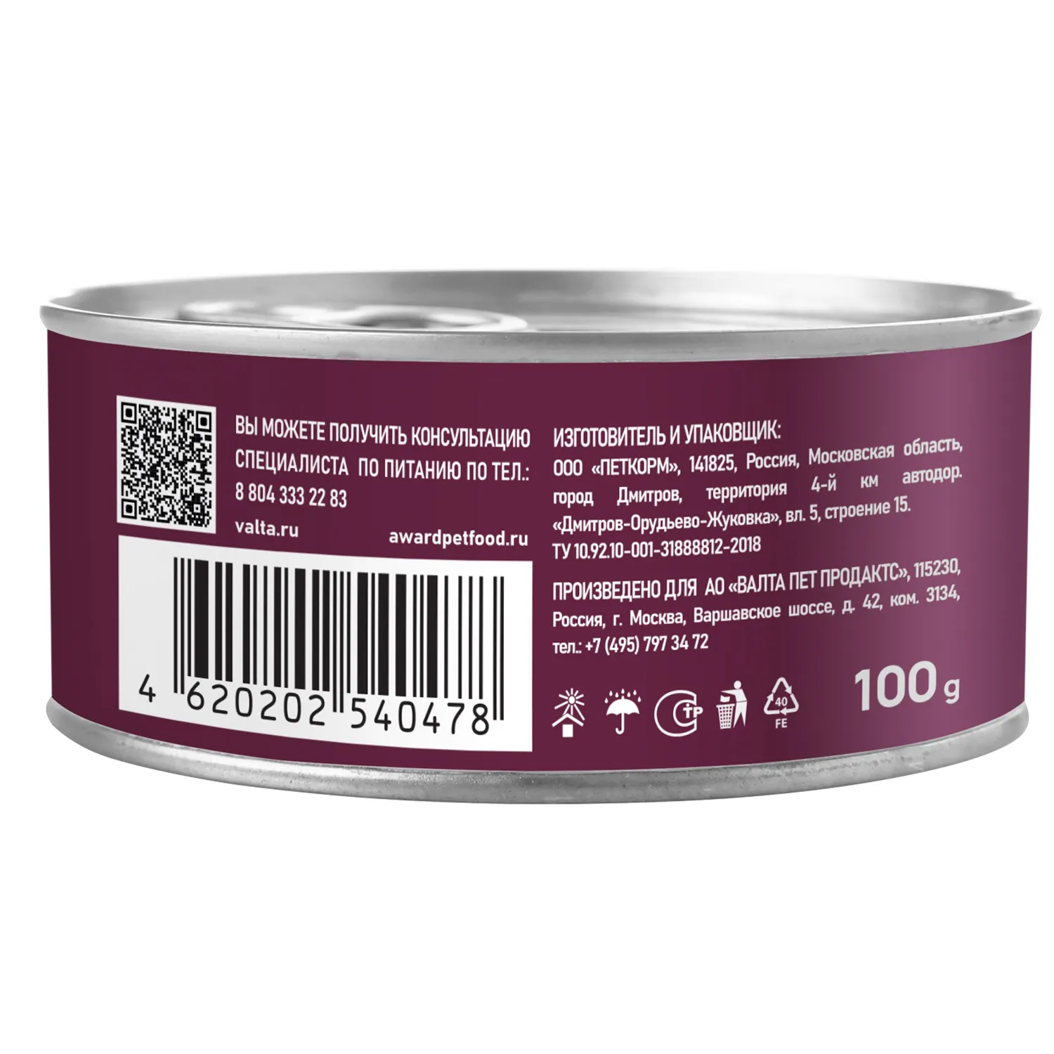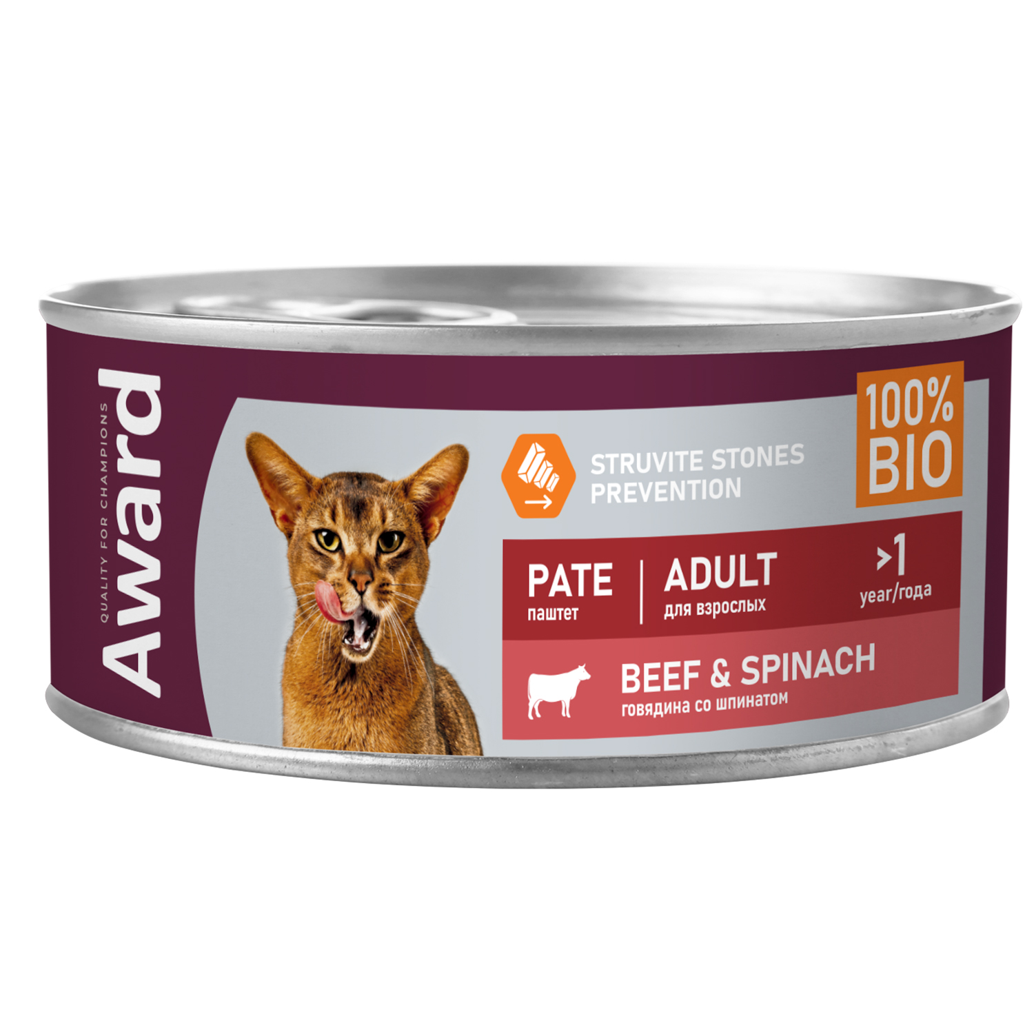 Влажный корм AWARD для взрослых кошек паштет из говядины со шпинатом 100г