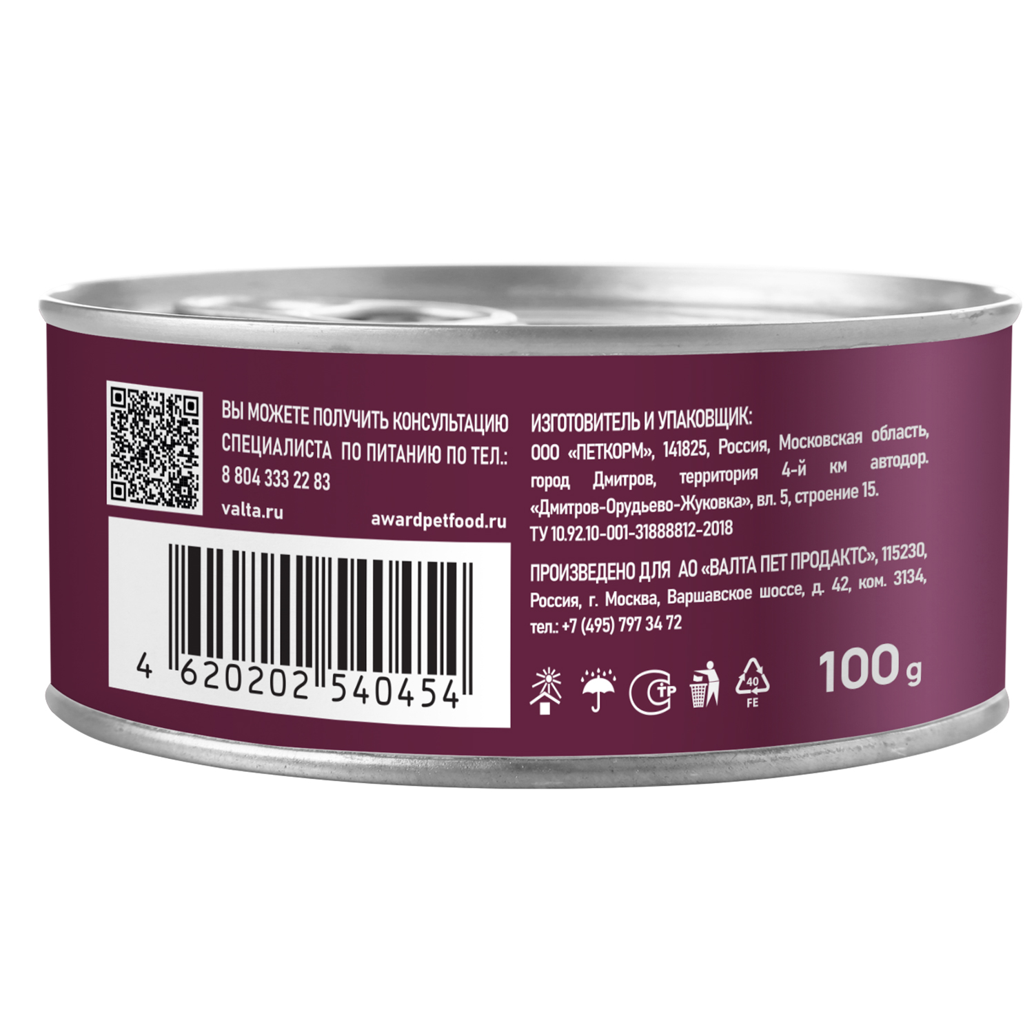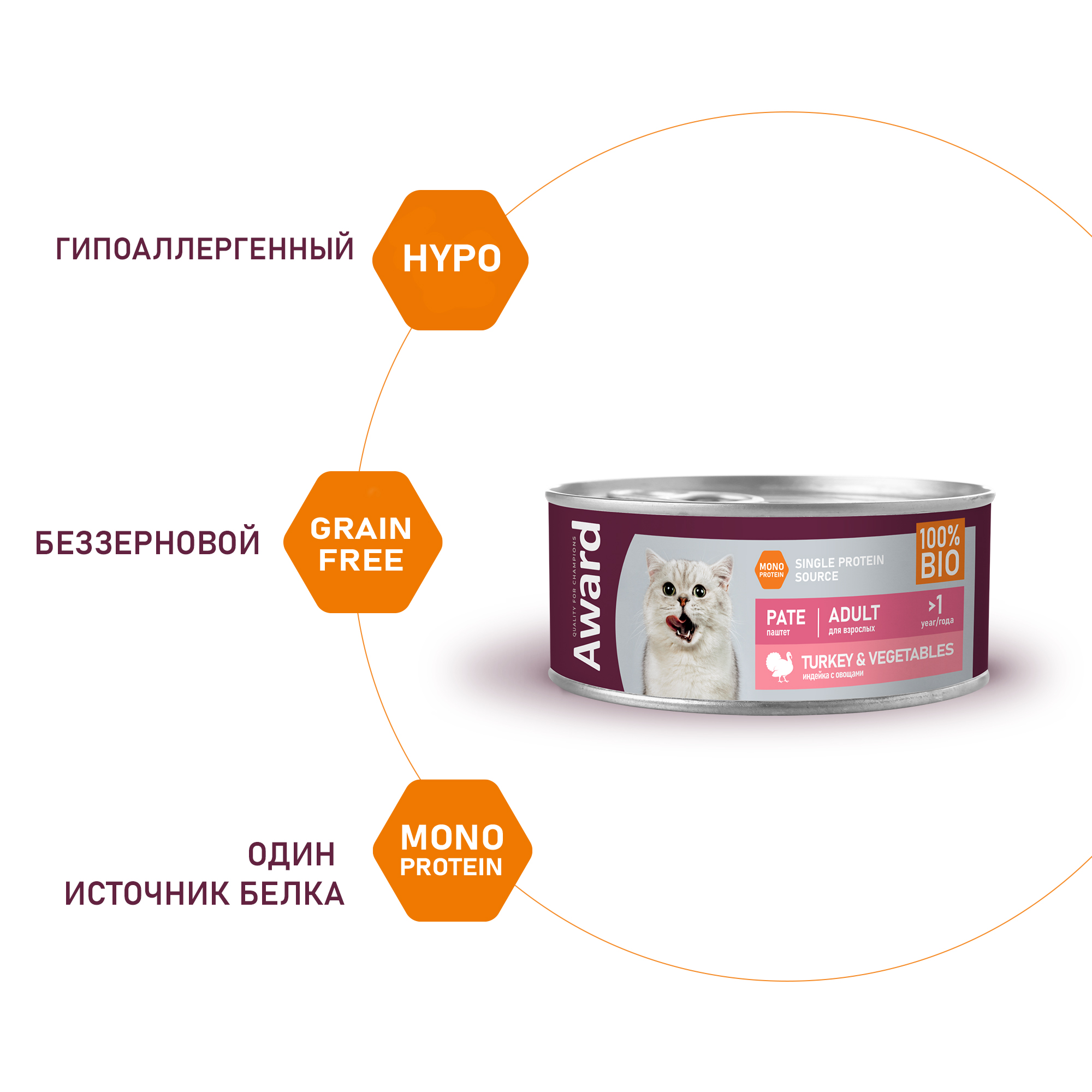 Влажный корм AWARD для взрослых кошек паштет из индейки с овощами 100г