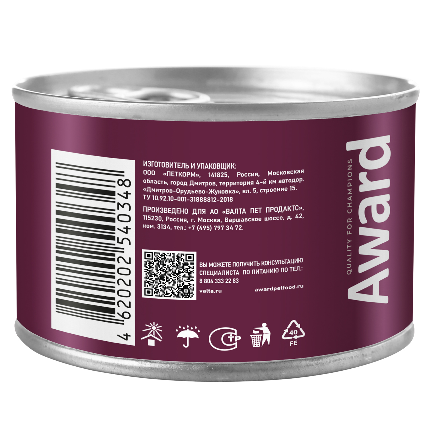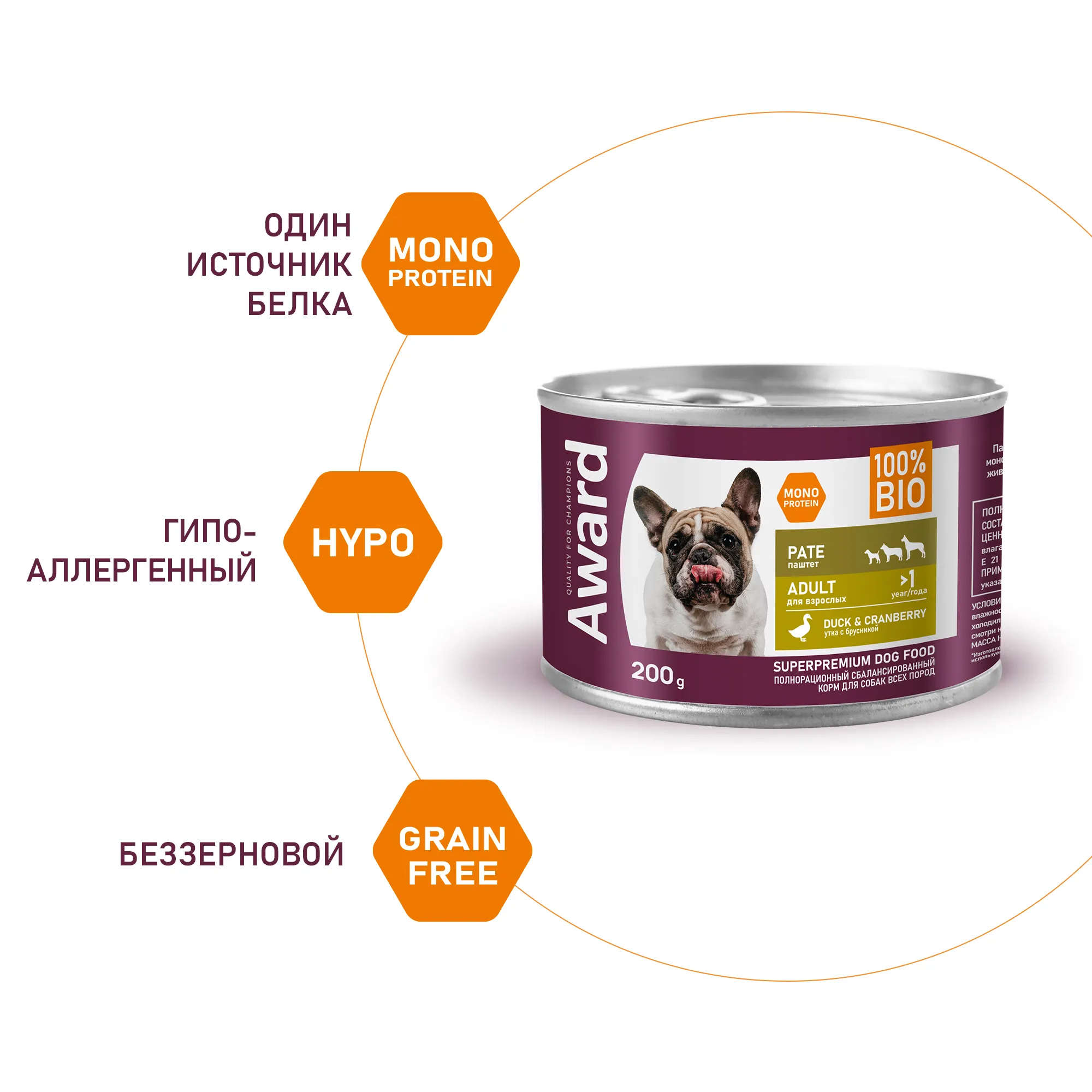 Влажный корм AWARD для взрослых собак паштет из утки с брусникой 200г